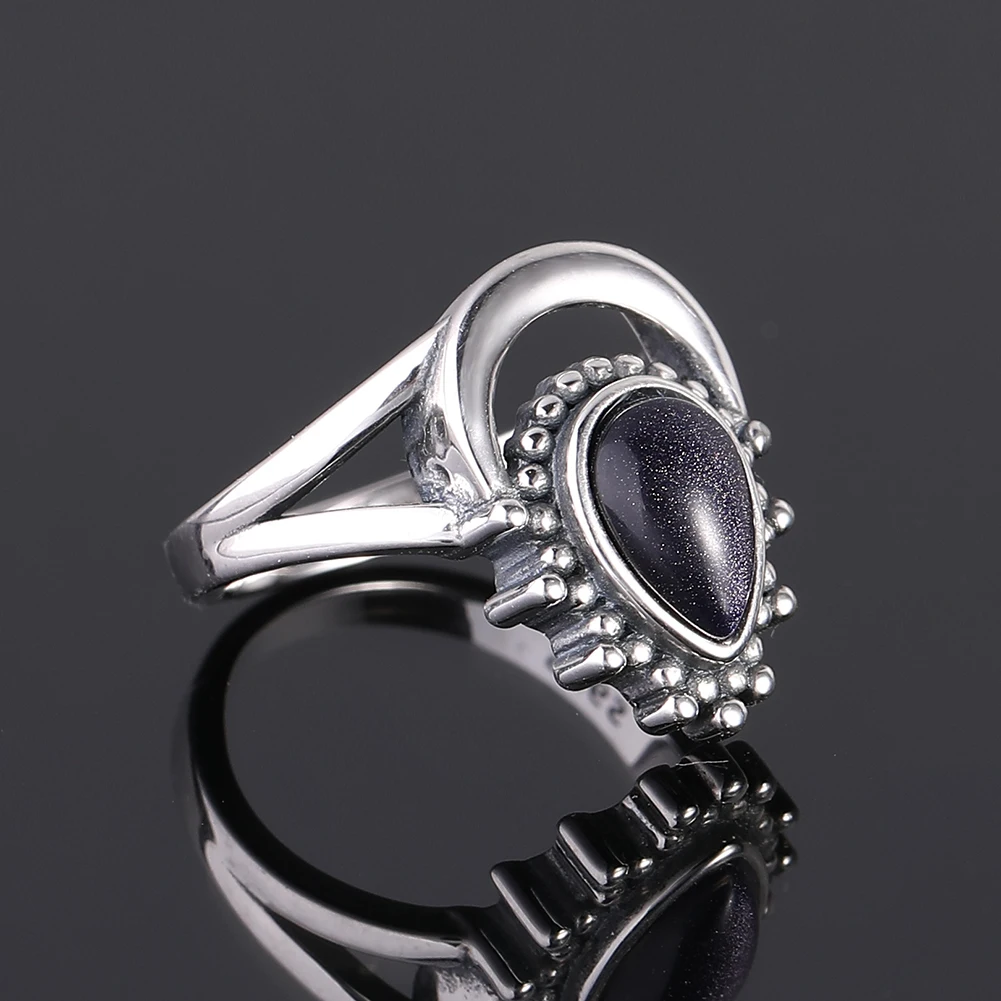 Винтажные кольца на палец из серебра 925 пробы для мужчин и женщин 7x9 мм в форме капли воды из голубого песчаника, Подарок на годовщину свадьбы Вечерние вечеринку