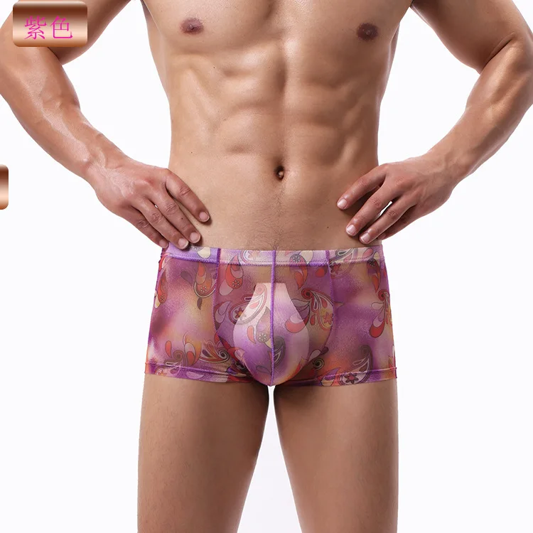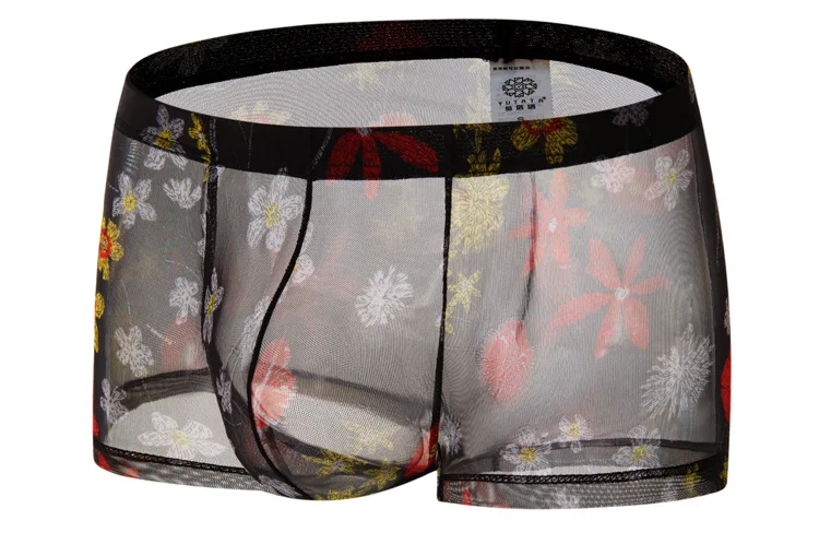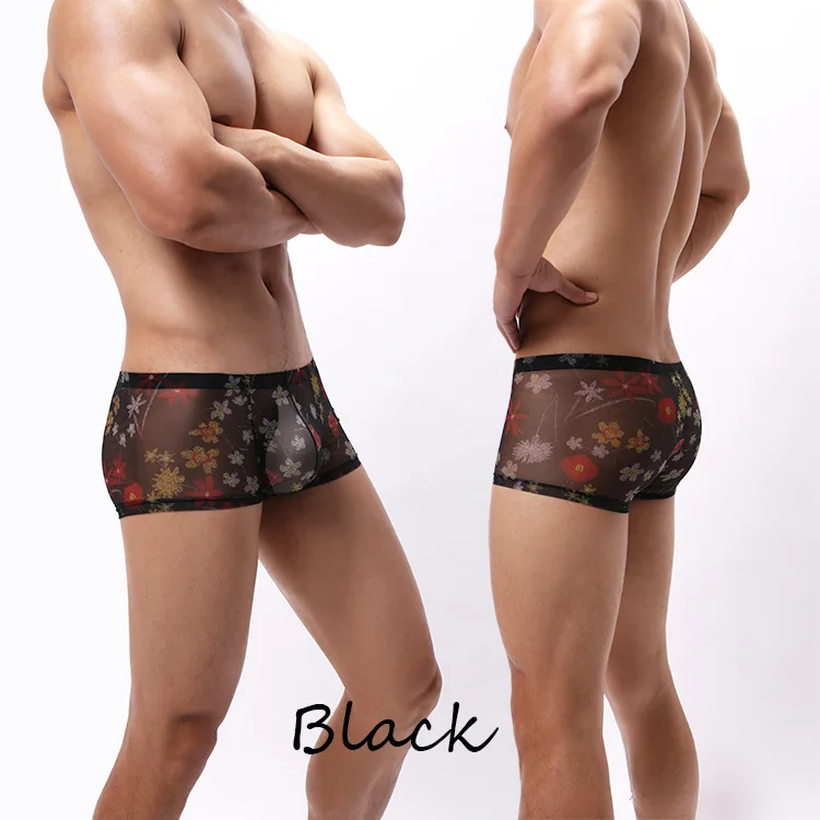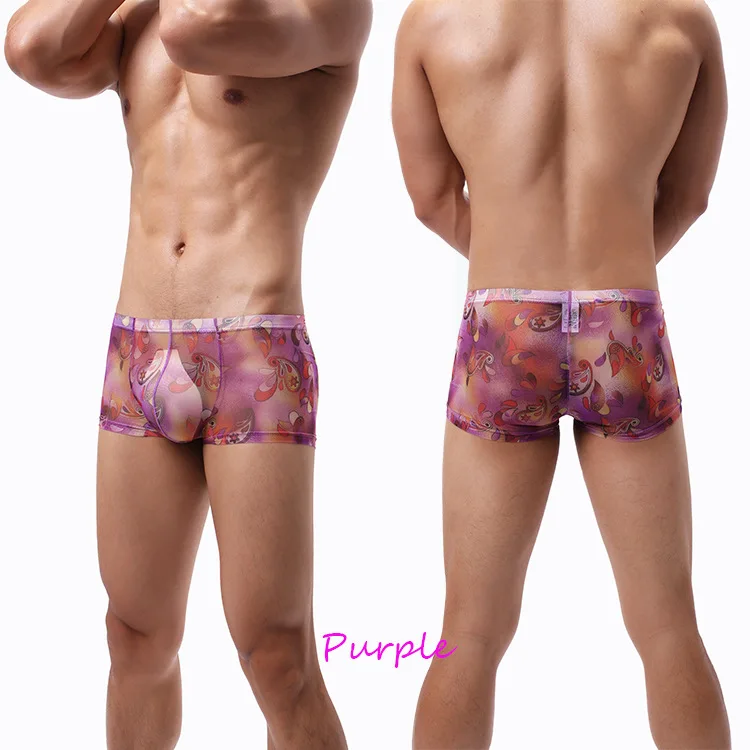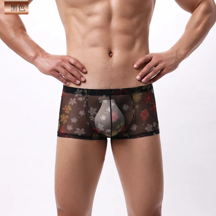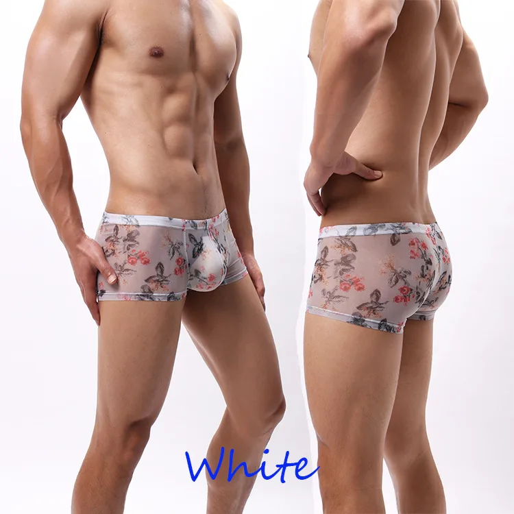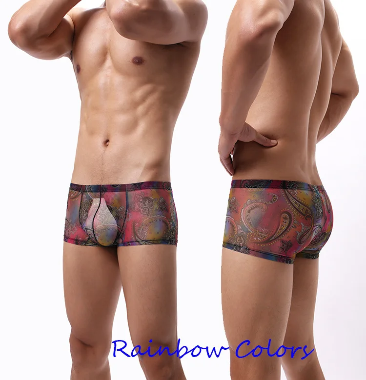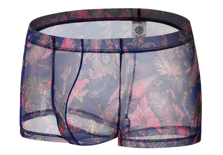 Сексуальное мужское нижнее белье с принтом в богемном тропическом стиле, сетчатые мужские боксеры, тонкое прозрачное мягкое Мужское нижнее белье мужские трусы, мужские трусы бикини