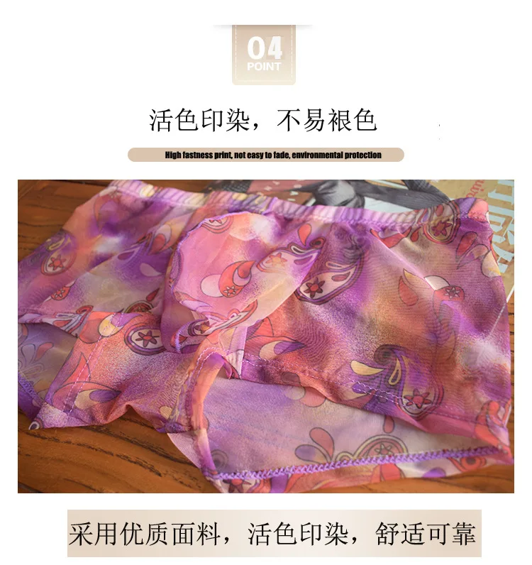 Боксеры мужские с тропическим принтом, пикантное нижнее белье, в богемном стиле, сетчатые тонкие прозрачные мягкие брифы