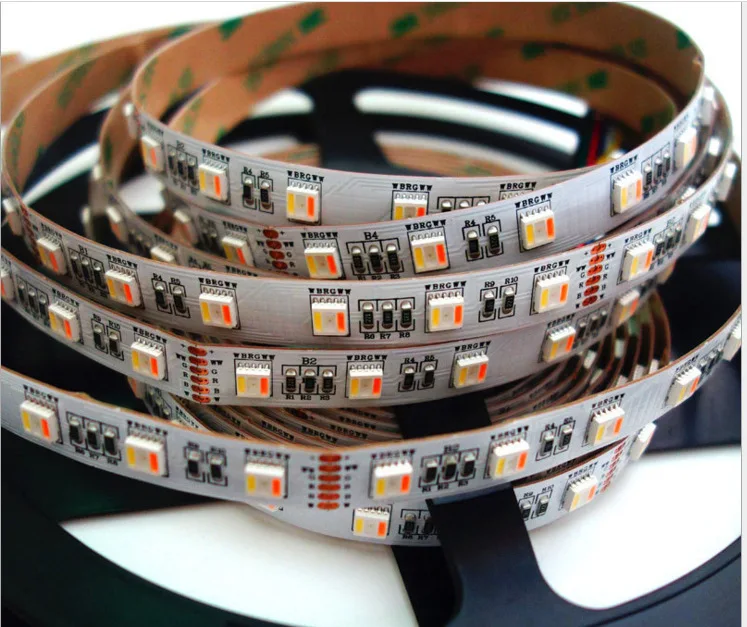 Гибкая светодиодная лента 5 м 12 мм PCB 5 м 5 в 1 RGB + CCT 5050 60 светодиодовм 5 цветов в 1 чип CW + RGB + WW RGBW RGBWW 12 В 24 В