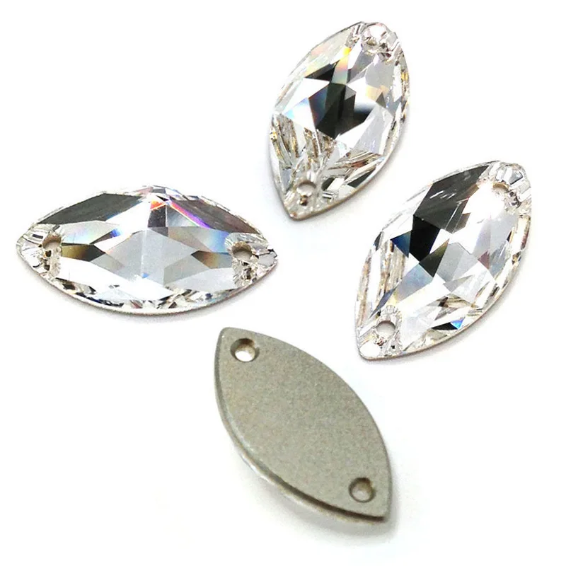 Стеклянные камни для шитья YANRUO 3223 Navette AAAAA, плоские страз...