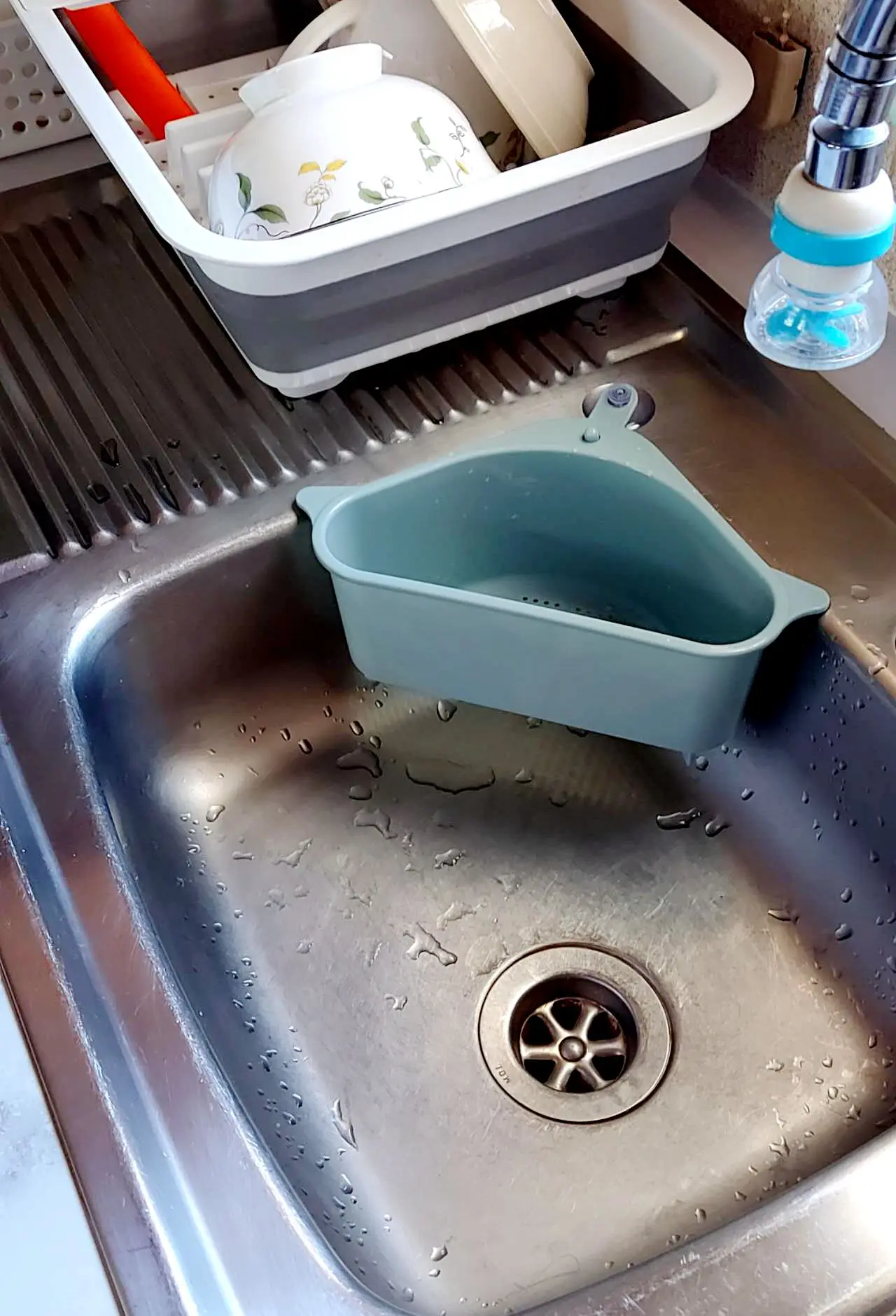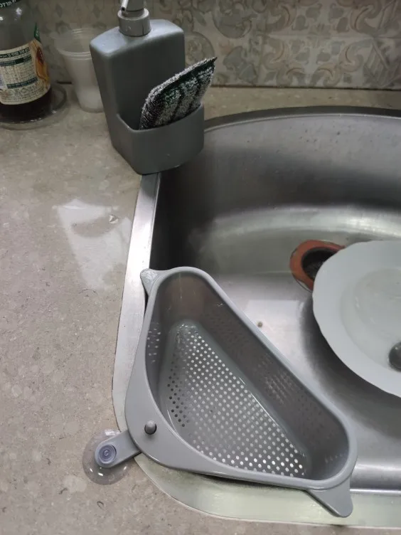 Кухонная треугольная сливная решетка для раковины, сливная корзина для фруктов, держатель для губки на присоске, стойка для хранения, полка для фильтра на раковину
