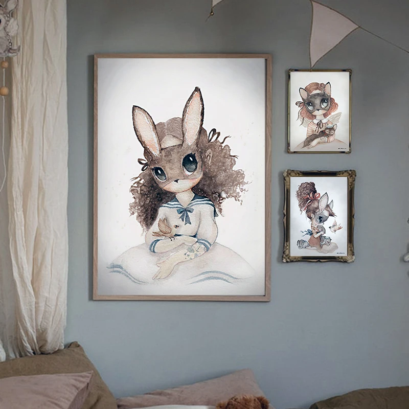 Kawaii Животные живопись на холсте, мультфильмы кролик Плакаты прин...