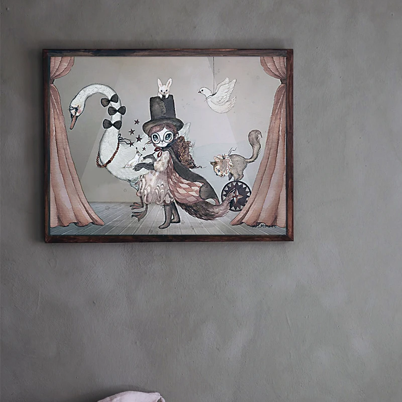 Настенная картина в скандинавском стиле с изображением кролика и лебедя, Мультяшные Плакаты для детской комнаты, Картина на холсте в скандинавском стиле для девочек и мальчиков, декор для детской комнаты