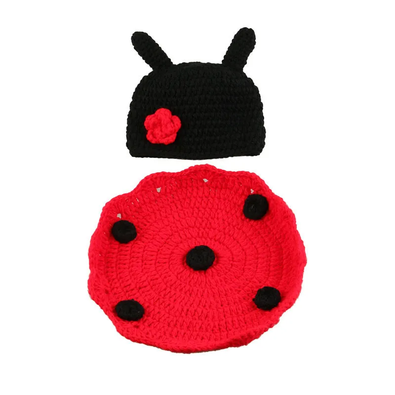 Одежда для фотосъемки новорожденных, милый дизайн божьей коровки, вязаный крючком костюм животного, головные уборы для фотосъемки