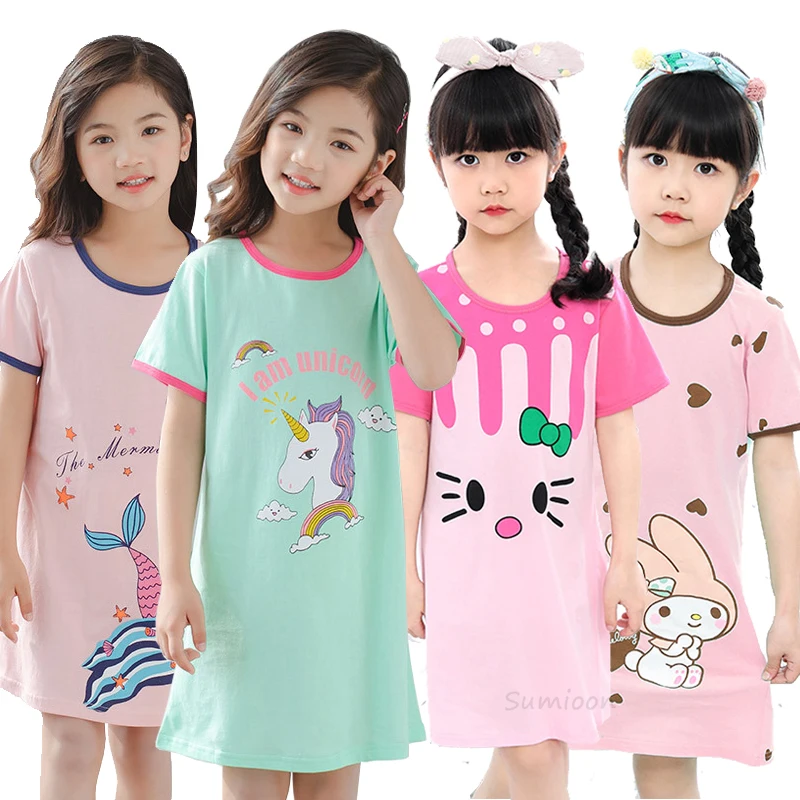 Модная детская одежда, летняя одежда для сна для девочек, детская ночная рубашка с мультяшным единорогом, ночная рубашка для девочек, пижамное платье, ночная рубашка