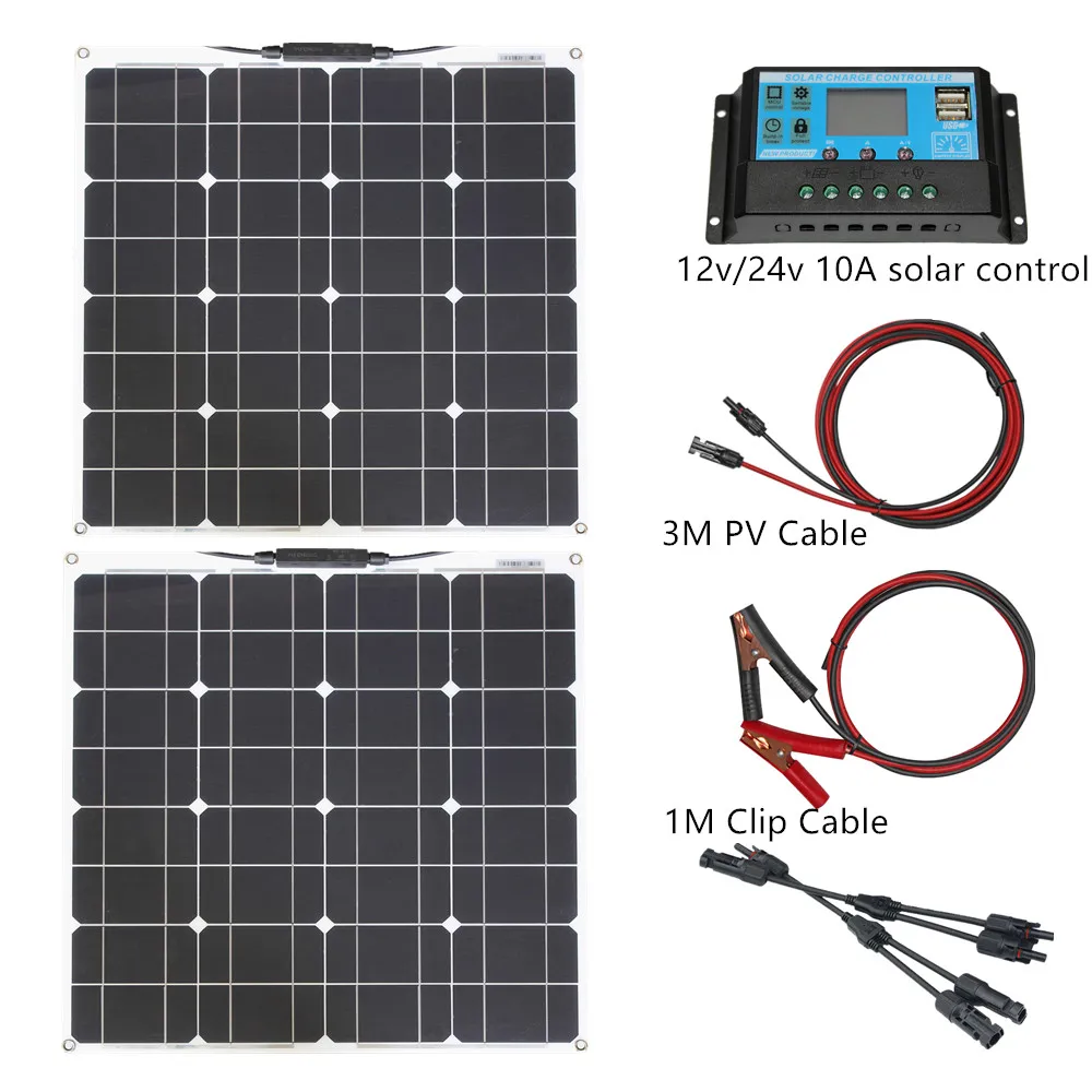 Гибкая солнечная панель 50 Вт 100 Вт, модуль моноячейки солнечной системы 12 В24 В10 А, кабель контроллера, набор для самостоятельной зарядки рыболовных лодок, каютов