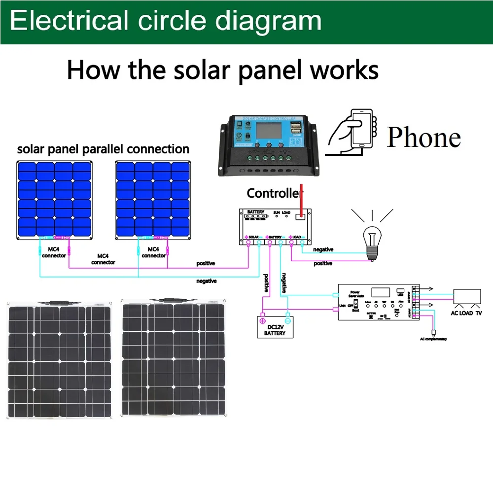 Гибкая солнечная панель 50 Вт 100 Вт, модуль моноячейки солнечной системы 12 В/24 В/10 А, кабель контроллера, набор для самостоятельной зарядки рыболовных лодок, каютов Упаковочный лист 1,2 шт. 50 Вт солнечная панель 2,1 pcs 12v/24v10A контроллер 3,1 Декодер каналов кабельного телевидения 3 м кабель с PV разъем (2.5mm2) 4,1 Декодер каналов кабельного телевидения 1 м кабель с защищенный зажим «крокодил» (2.5mm2) 5,1 Декодер каналов кабельного телевидения 2 в 1 адаптер