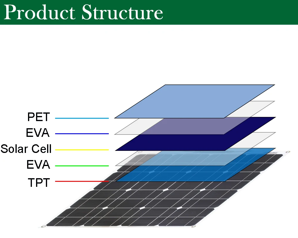 Малозаметно, легкая плоская панель мощностью 50 Вт составляет всего лишь десятую от одного дюйма! Эта панель, примерно на 95% тоньше, чем ее жесткий аналог, идеально подходит для плавной установки солнечной батареи