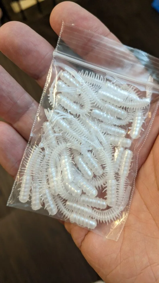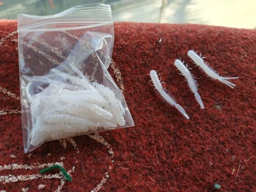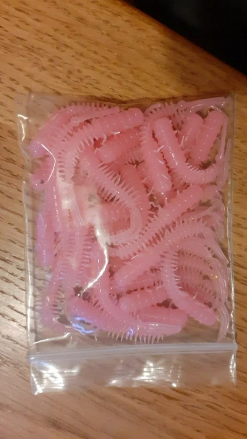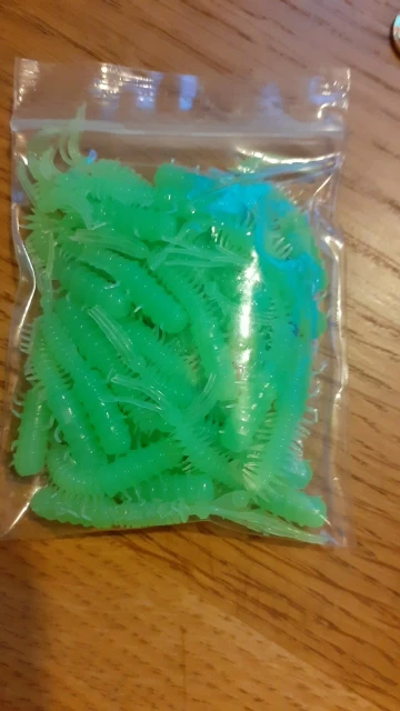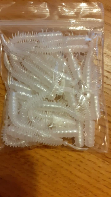 Резина мягкая, съедобная. Посылка не отслеживалась. Хорошо подойдут для микроджига
