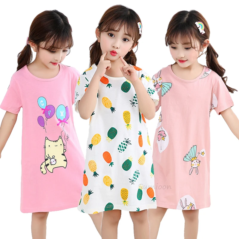Летняя ночная рубашка для девочек, детские пижамы, хлопковые ночные...