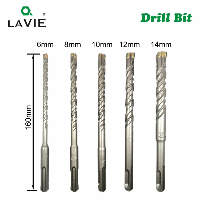 Сверла по бетону SDS Plus, 5-14 мм, 1 шт., поперечные наконечники, 4 резака, 110 мм, 160 мм