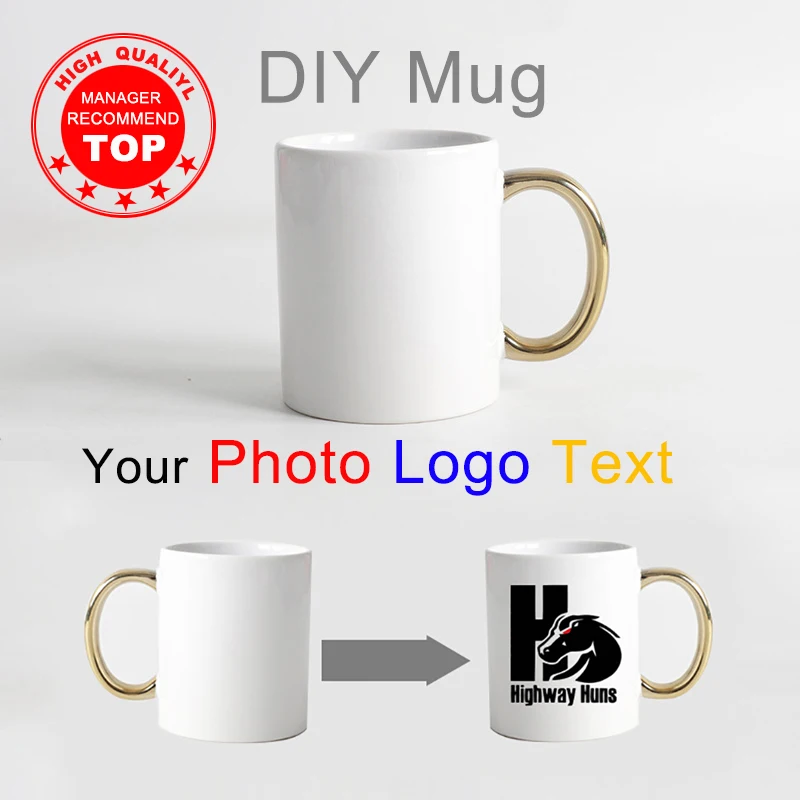 Высокое качество Золотая Ручка DIY кружка Белый фарфор фото кофейная чашка на заказ Сделай Сам любимая фотография Логотип текстовые кружки