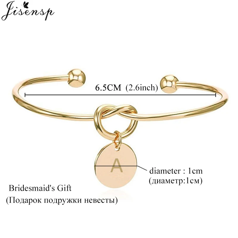 Браслет-манжета Jisensp, на запястье, с узелком, 26 букв, для женщин, для подружек невесты
