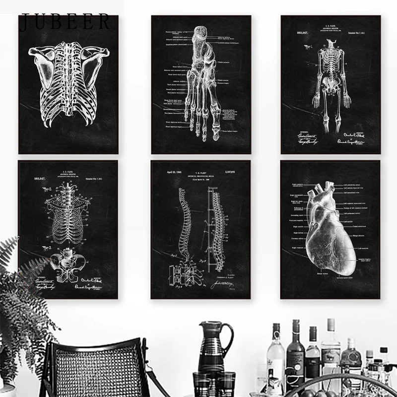 Настенная картина с изображением мышц стопы, костей, сердца, анатомический скелет, постеры и принты в скандинавском стиле, комнатные картины для украшения офиса врача