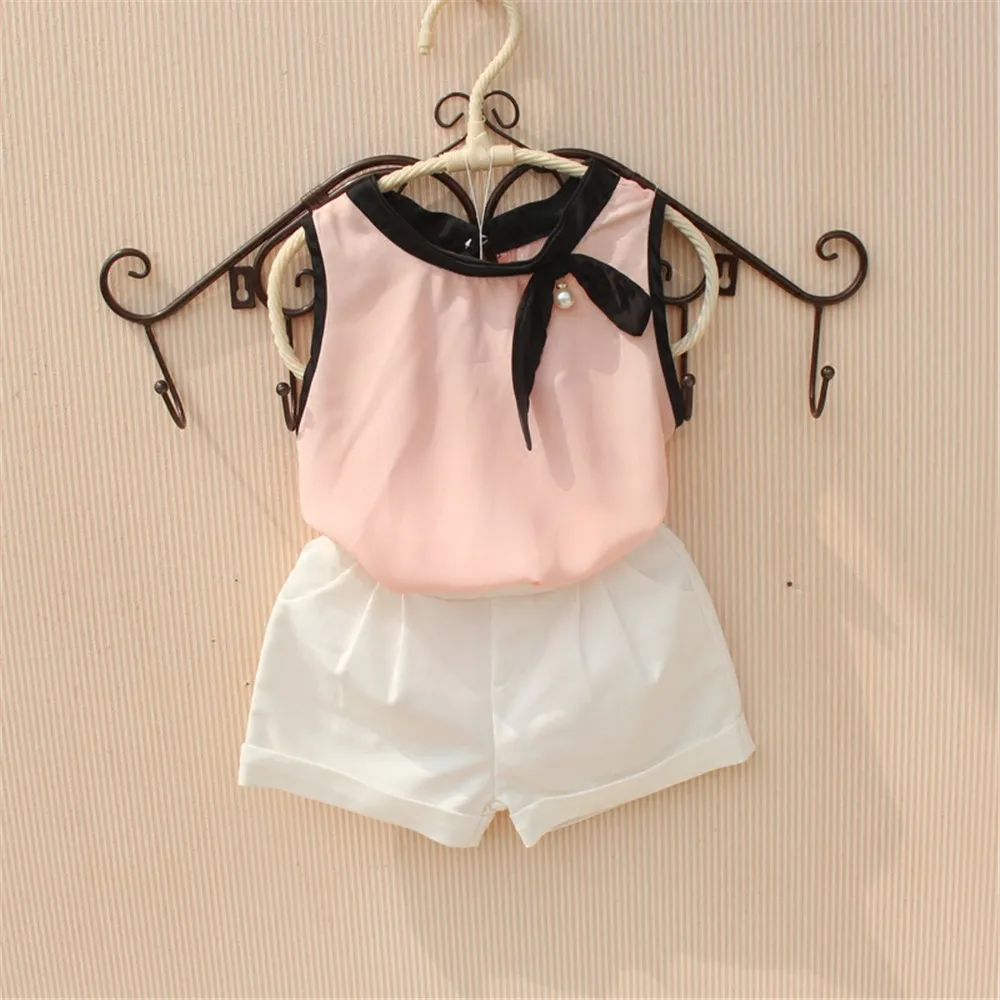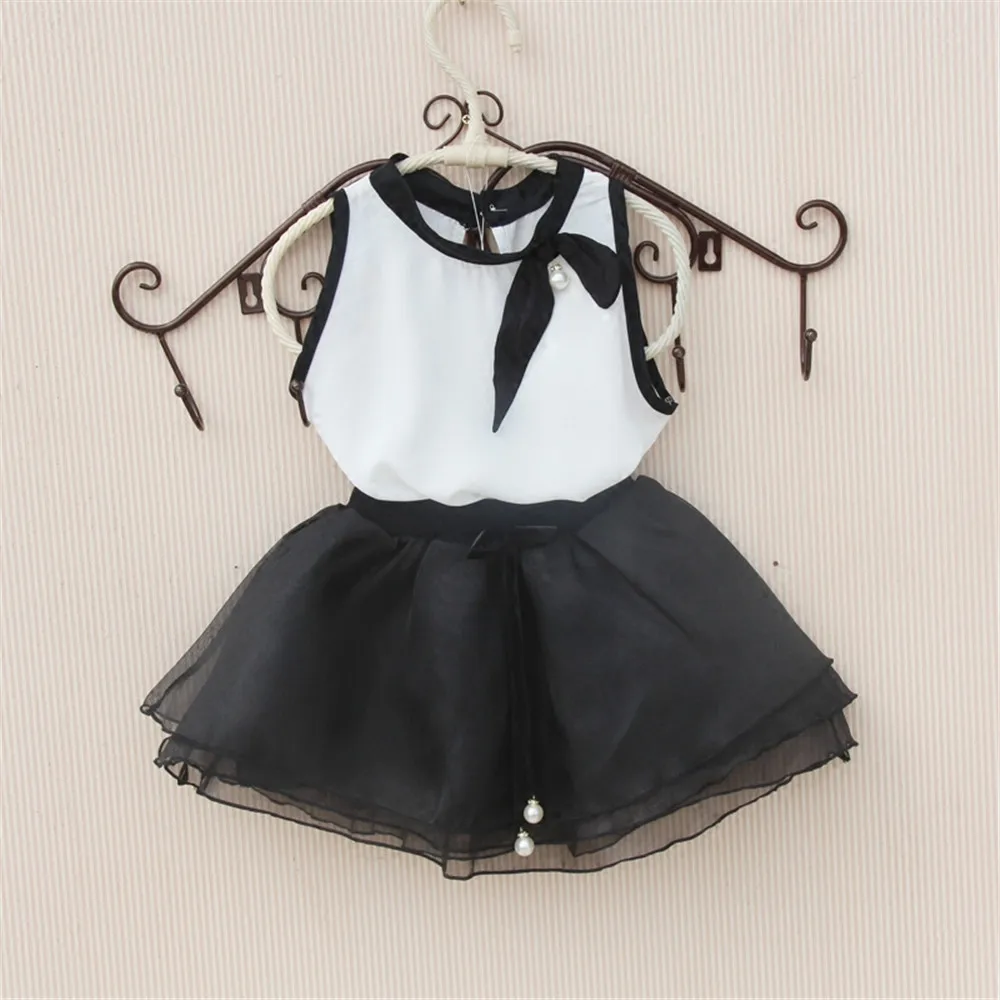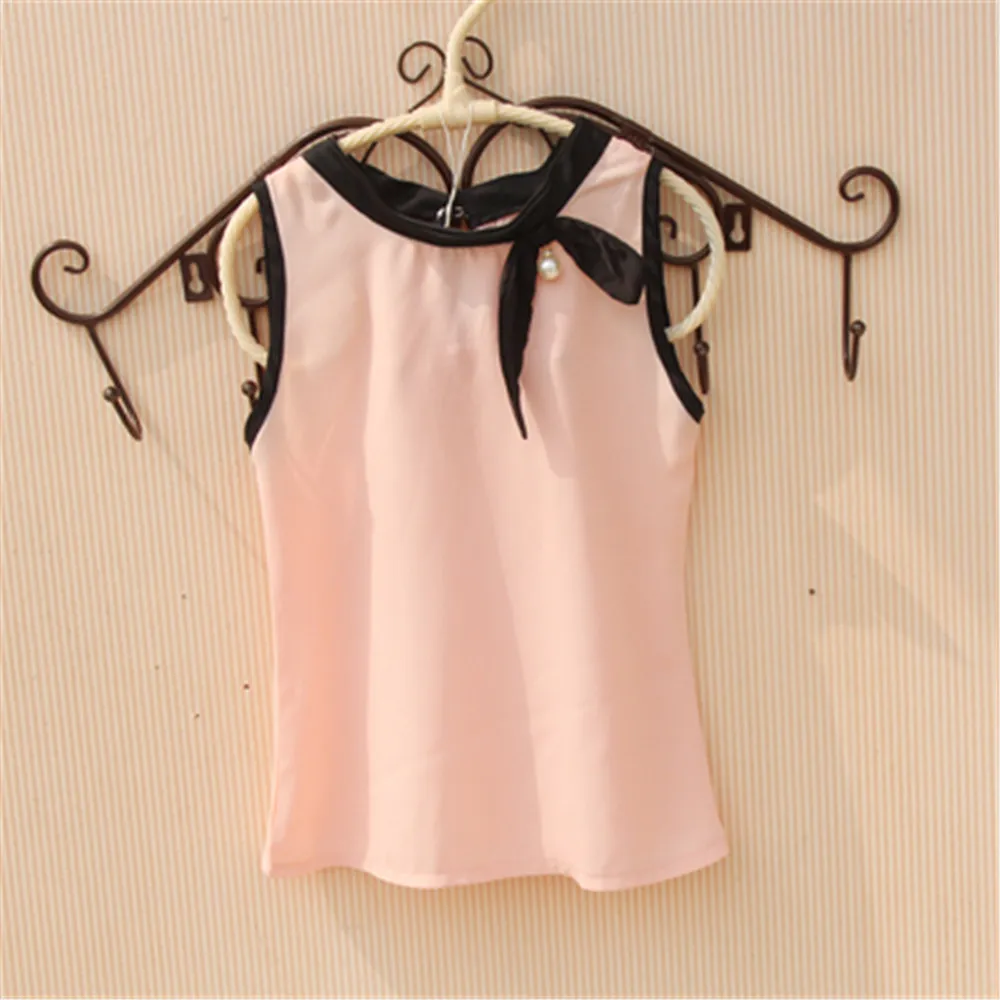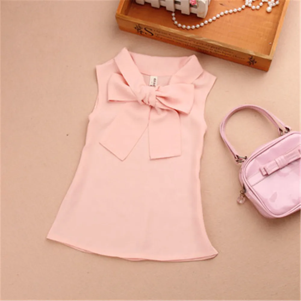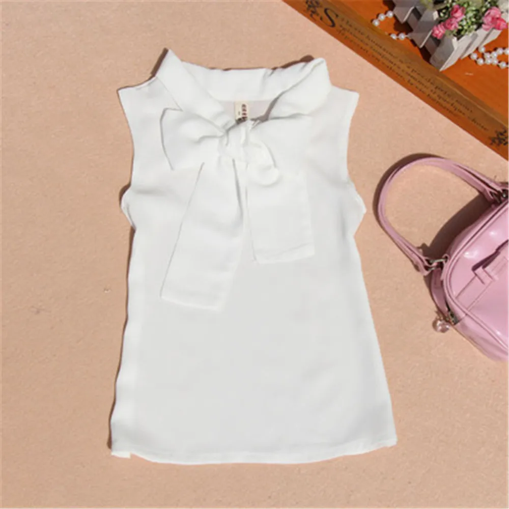 Шифоновая рубашка для девочек, белая, однотонная, без рукавов, с кружевом