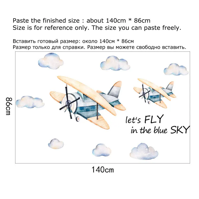 Мультяшные акварельные облака самолёт наклейки на стену обои для де...