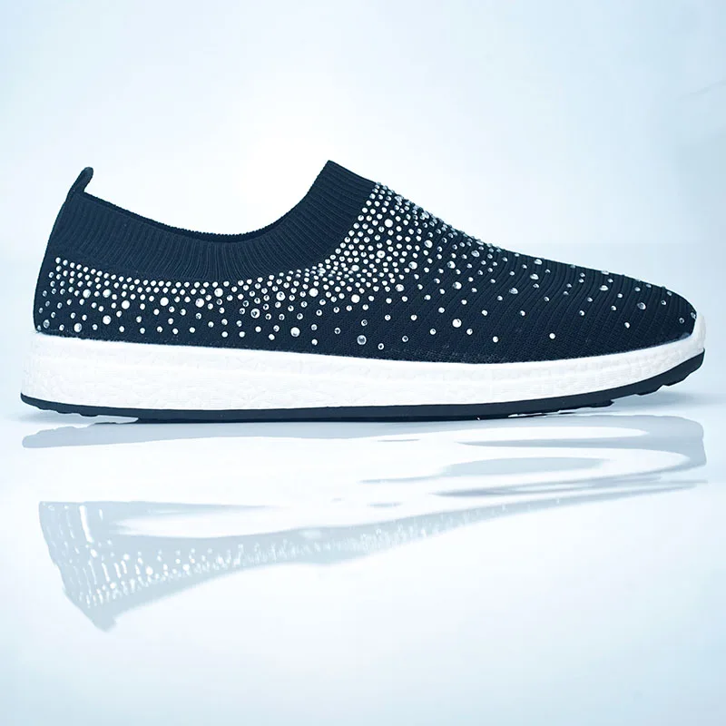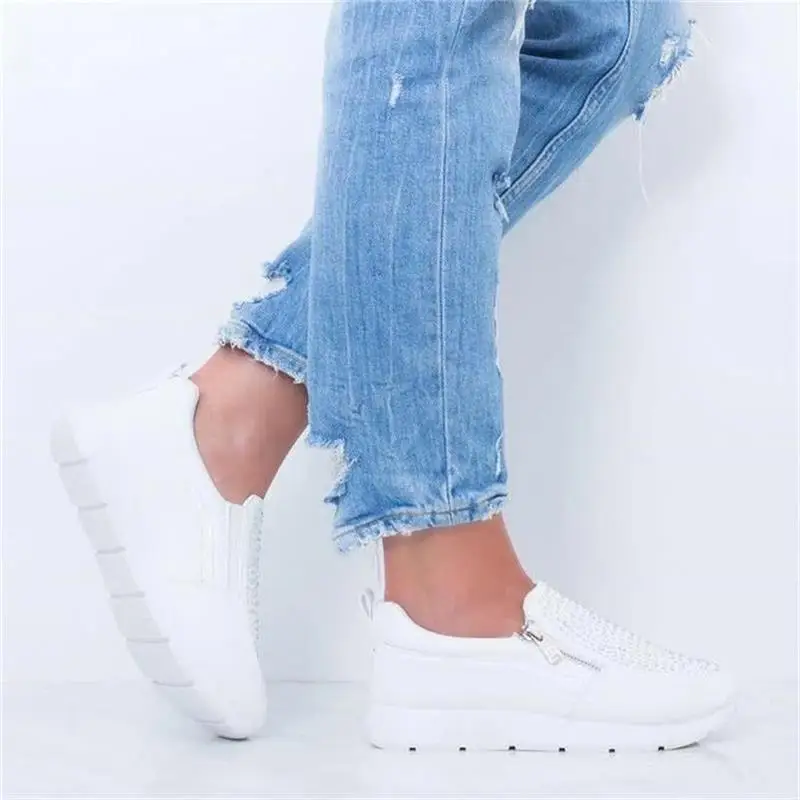 Женские кроссовки с кристаллами, на плоской подошве, на молнии, Нескользящие, дышащие, Вулканизированная подошва, повседневная обувь для улицы, весна-осень 2020