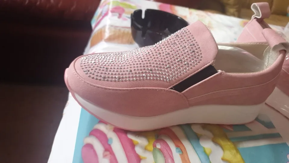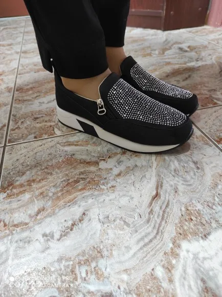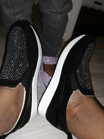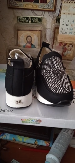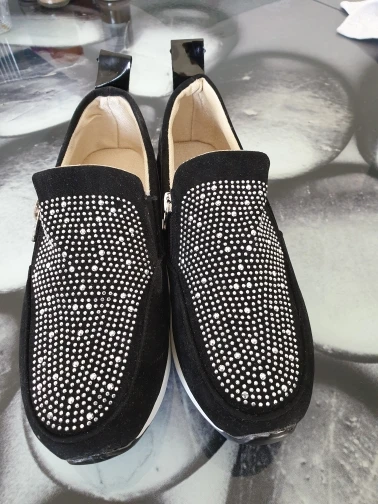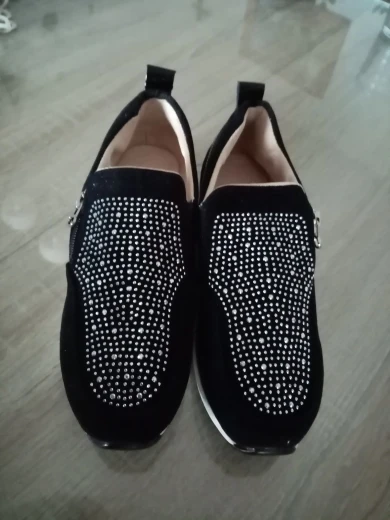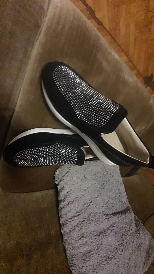 Товар полностью соответствует описанию. Посылка пришла быстро, товар был упакован качественно (в пупырку), внутри каждой кроссовки воздушная подушка. Размер соответствует размерной таблице по длине стопы, по ширине - лучше на узкую ногу. Очень удобные, лёгкие. Кристаллы наклеены хорошо. Спасибо продавцу. Крассовки к покупке рекомендую.