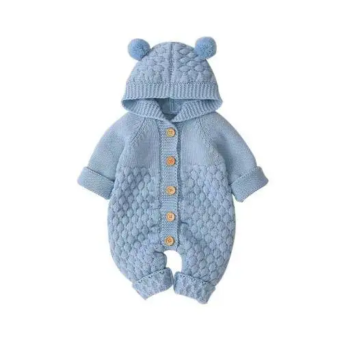 Вязаный комбинезон с ушками медведя для девочек и мальчиков, свитер...