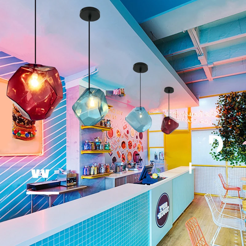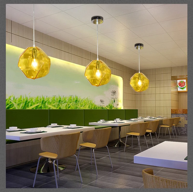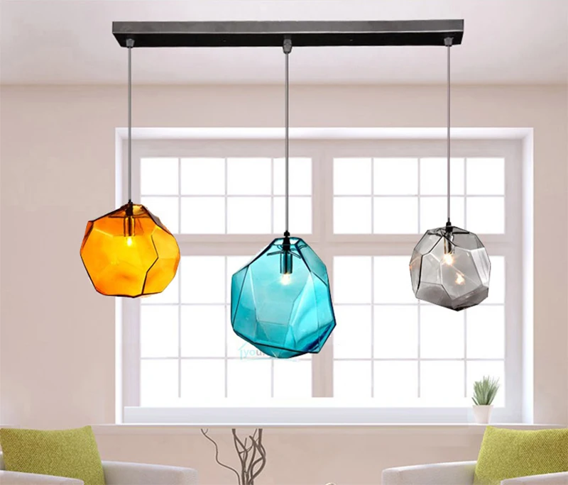 Современный минималистский красочный камень Стекло подвесной светильник Популярные Винтаж металлической подвеской Ламповые светильники Светильник ы с железным основанием Стекло крышка