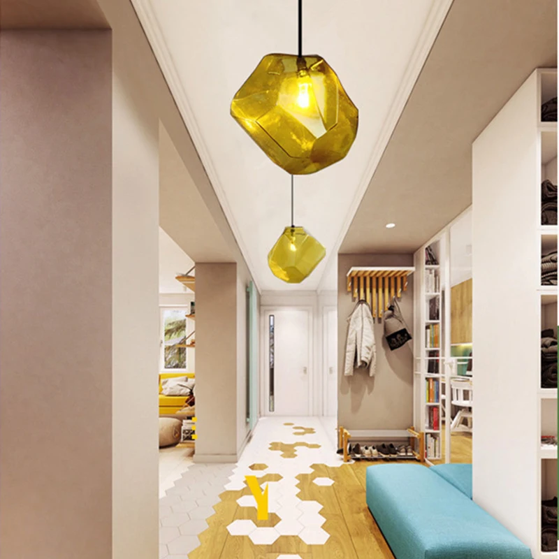 Простой каменный стеклянный подвесной светильник, цветная комнатная...