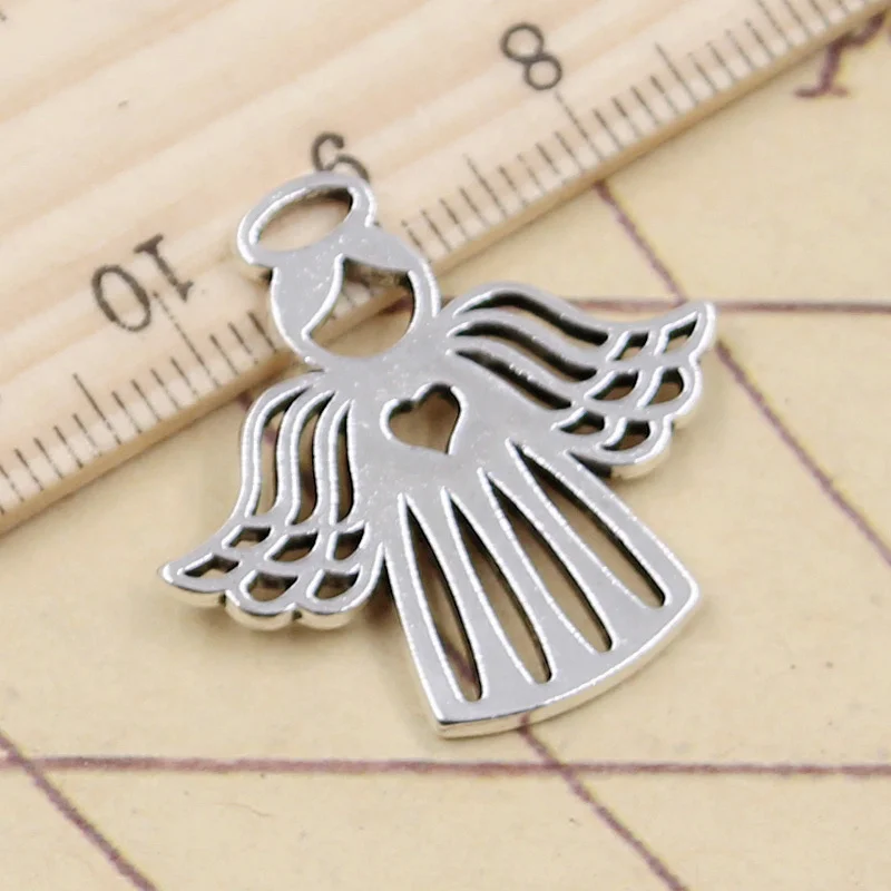 10 шт., подвески Love The Heart Angel, 27x28 мм, тибетский серебристый цвет, подвески, антикварные ювелирные изделия, сделай сам, ручная работа