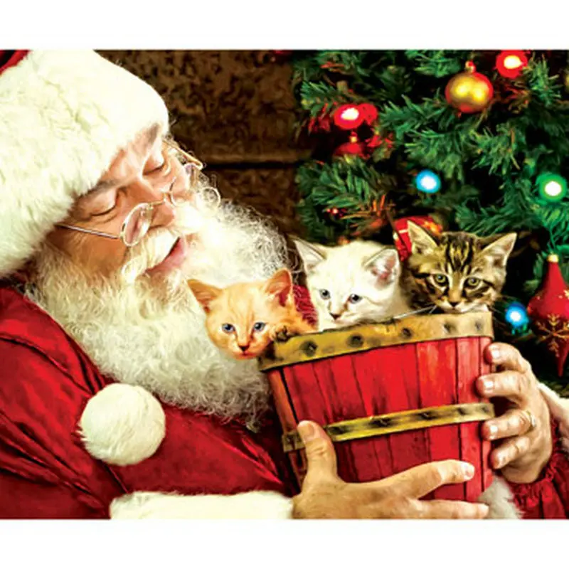 5D DIY квадратная полная Алмазная вышивка значок Кот Алмазная Картина Вышивка крестом Санта-Клаус узор Стразы живопись искусство