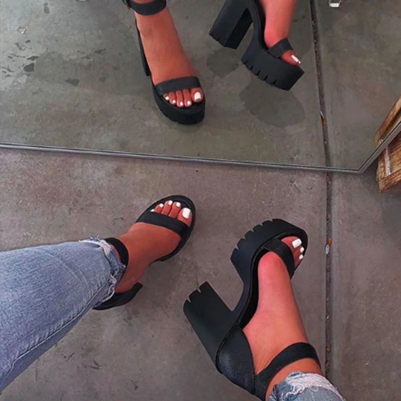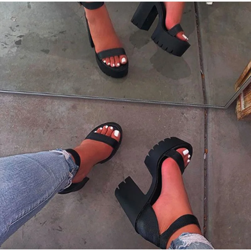 Женские босоножки на платформе, сандалии ярких цветов, с пряжкой, на высоком каблуке, с ремешком на щиколотке, пляжные, для лета