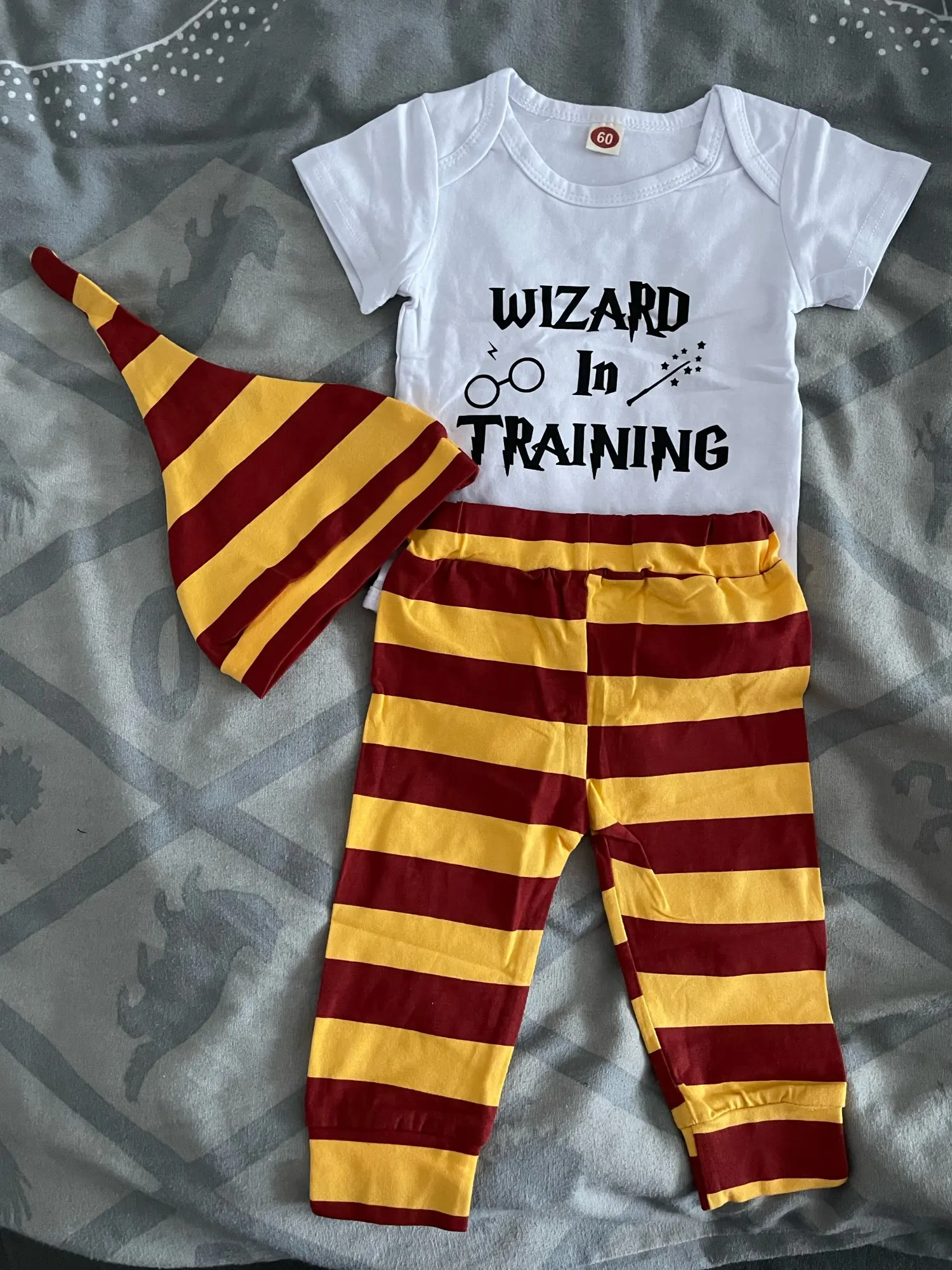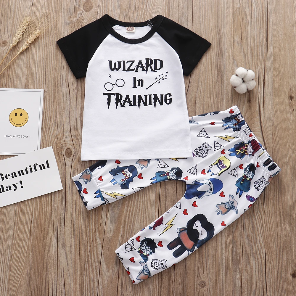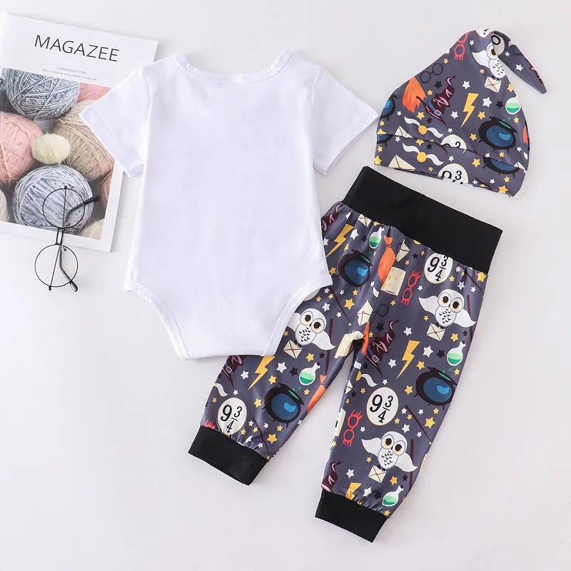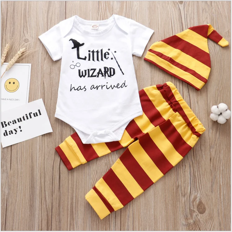 Одежда для маленьких мальчиков Комплекты из 3 предметов для новорожденных и детей постарше, топы волшебника + штаны + шляпы детские для девочки, комплекты одежды
