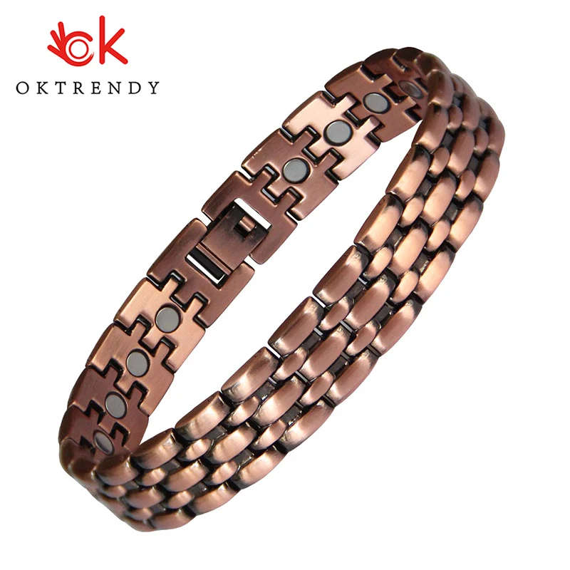 Браслет-цепочка Oktrendy из чистой меди, магнитная, для мужчин и женщин, рельефный браслет