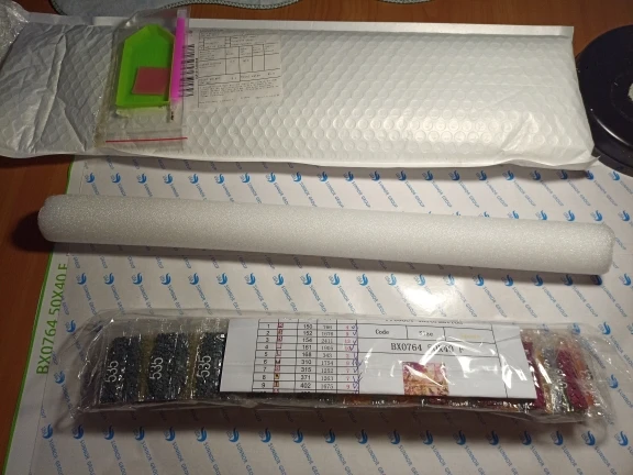 Продавец отправил все быстро но шла долго. Когда получила немного расстроилась. В целом все хорошо но есть два минуса: 1) нет пинцета. Поскольку я работаю только им это для меня существенный минус 2) картина была свернутая в трубочку вокруг страз (небыло намотки на валик или хотя-бы в тугую трубочку) как итог вся картина с воздушными зазорами между самой картиной и защитной плёнкой. Пришлось сразу всю вскрывать и переклеивать. Будем надеяться что клей не подсох иначе все отвалится. Если бы не эти два минуса то мне все понравилось. Качество неплохое