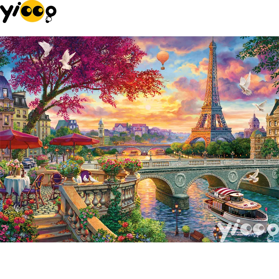 Квадратнаякруглая алмазная живопись, вышивка, пейзаж Парижа, вышивка крестиком, стразы, мозаика, украшение для дома BX0764