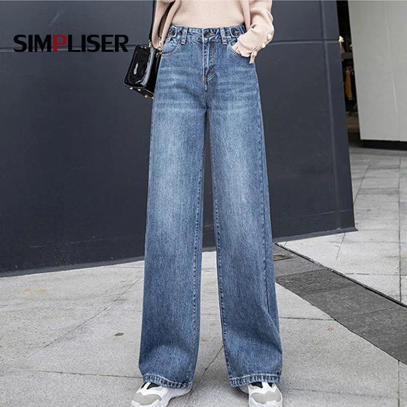Джинсы женские с широкими штанинами, повседневные длинные брюки с завышенной талией, свободные джинсы МОМ в ретро стиле, уличная одежда, большие размеры, 2020