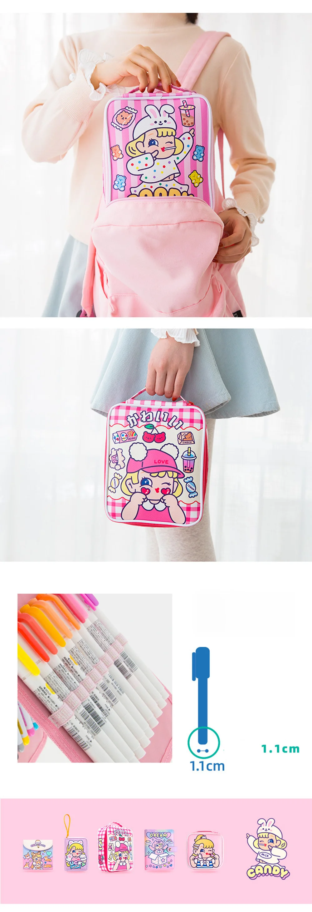 Милый школьный чехол-карандаш для девочек, сетчатый чехол-карандаш с 48 отверстиями, чехол-карандаш Kawaii, Корейская коробка для ручек, канцелярские товары, Сетчатая Сумка, картридж для карандашей