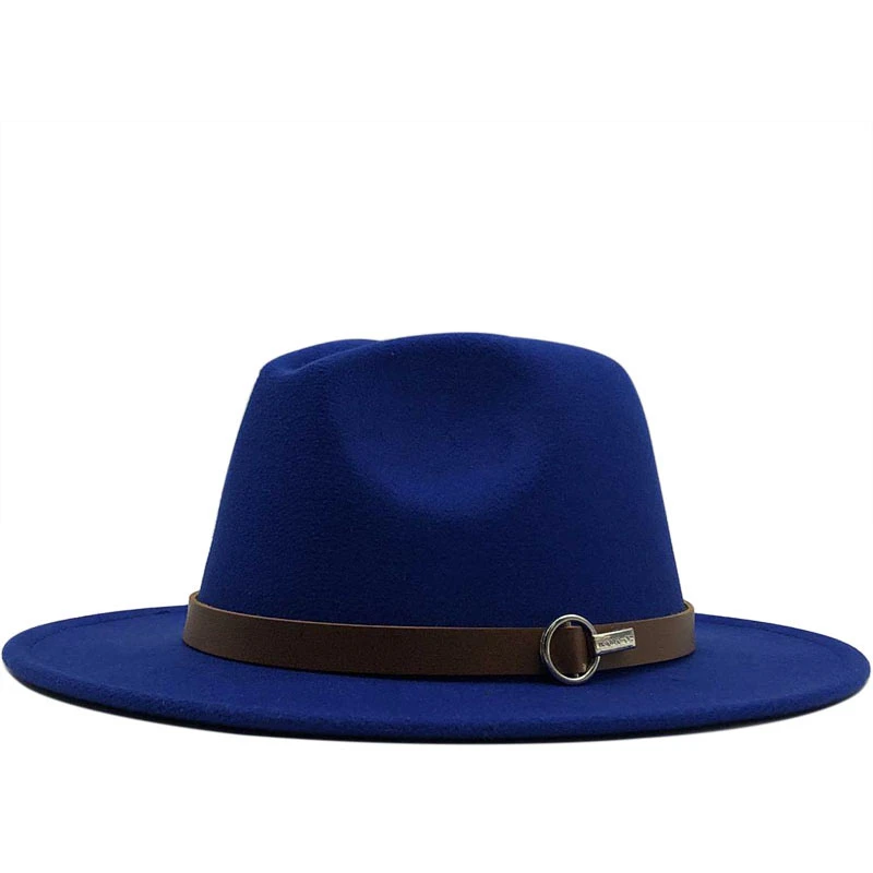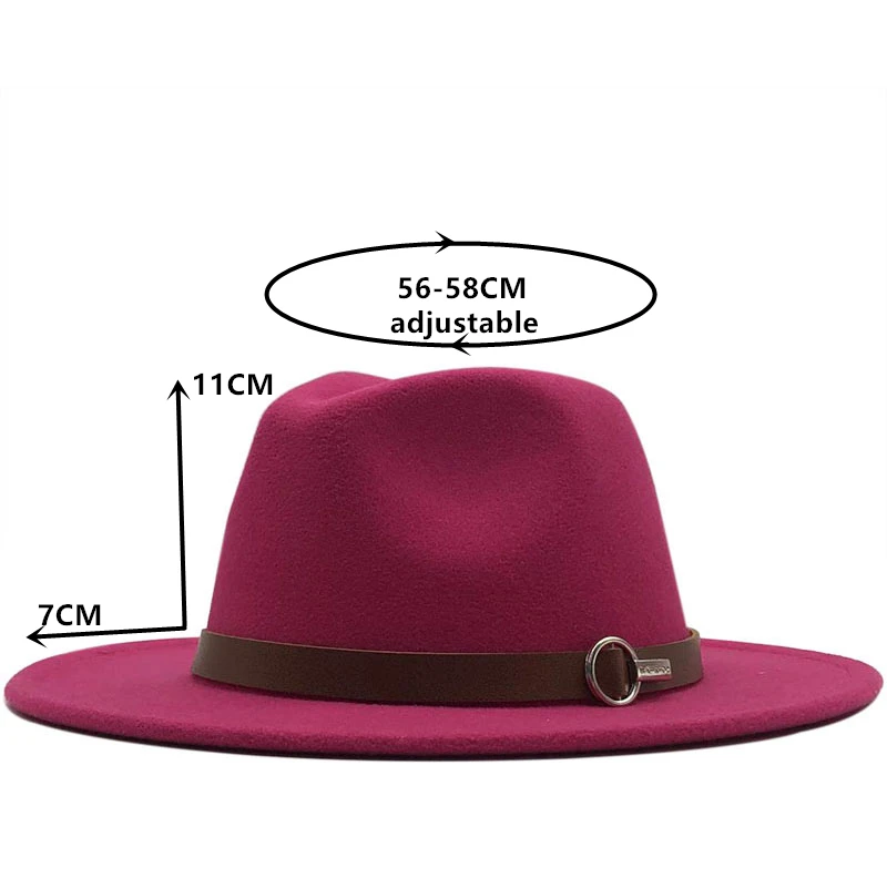 Men Women Wide Brim Wool Felt Fedora Panama Hat with Belt Buckle Ja...