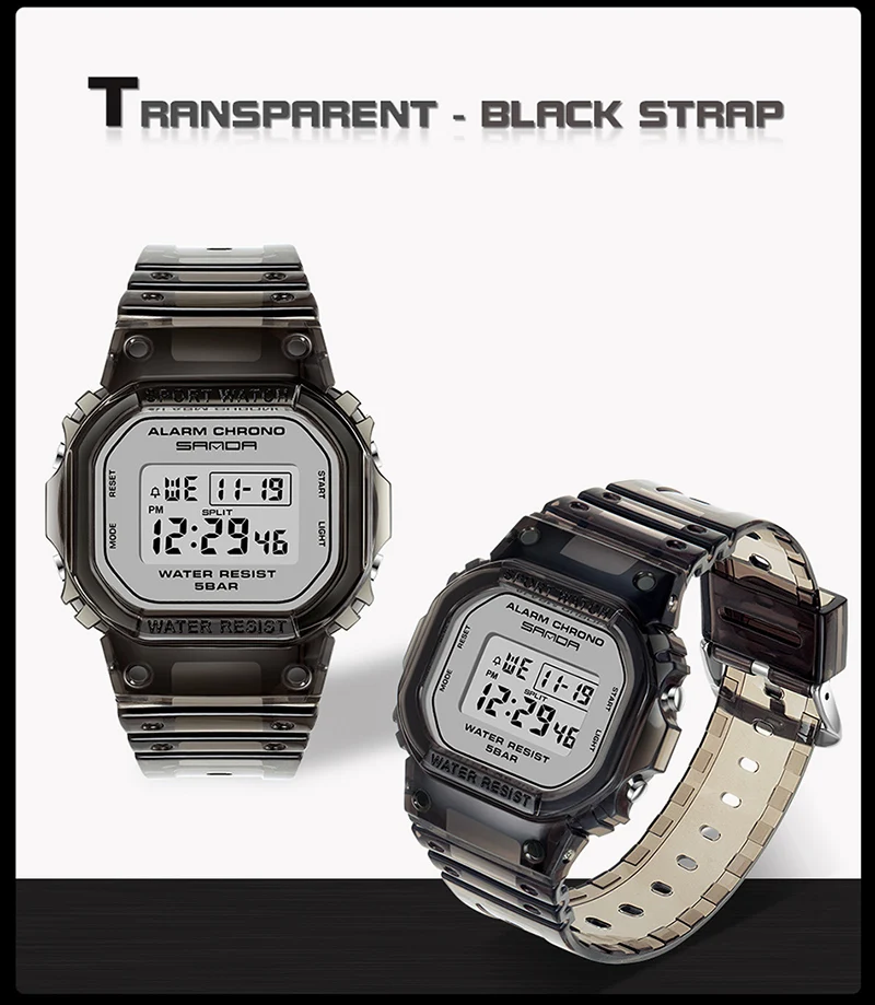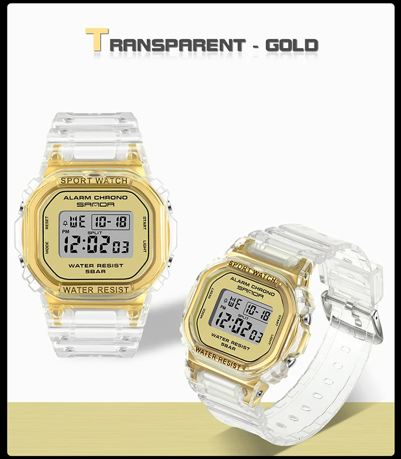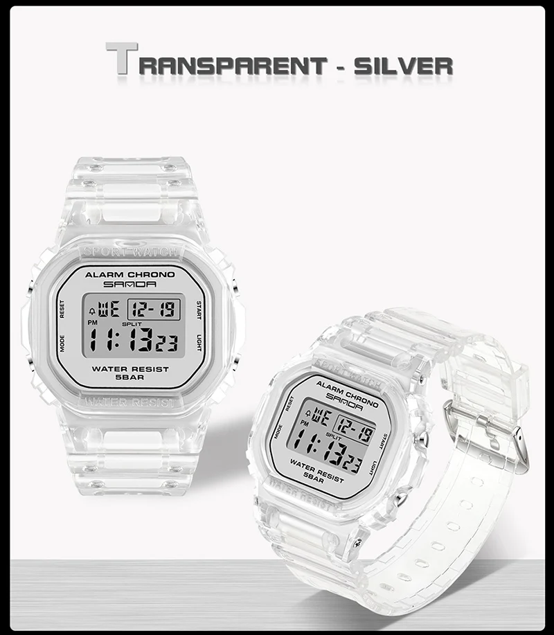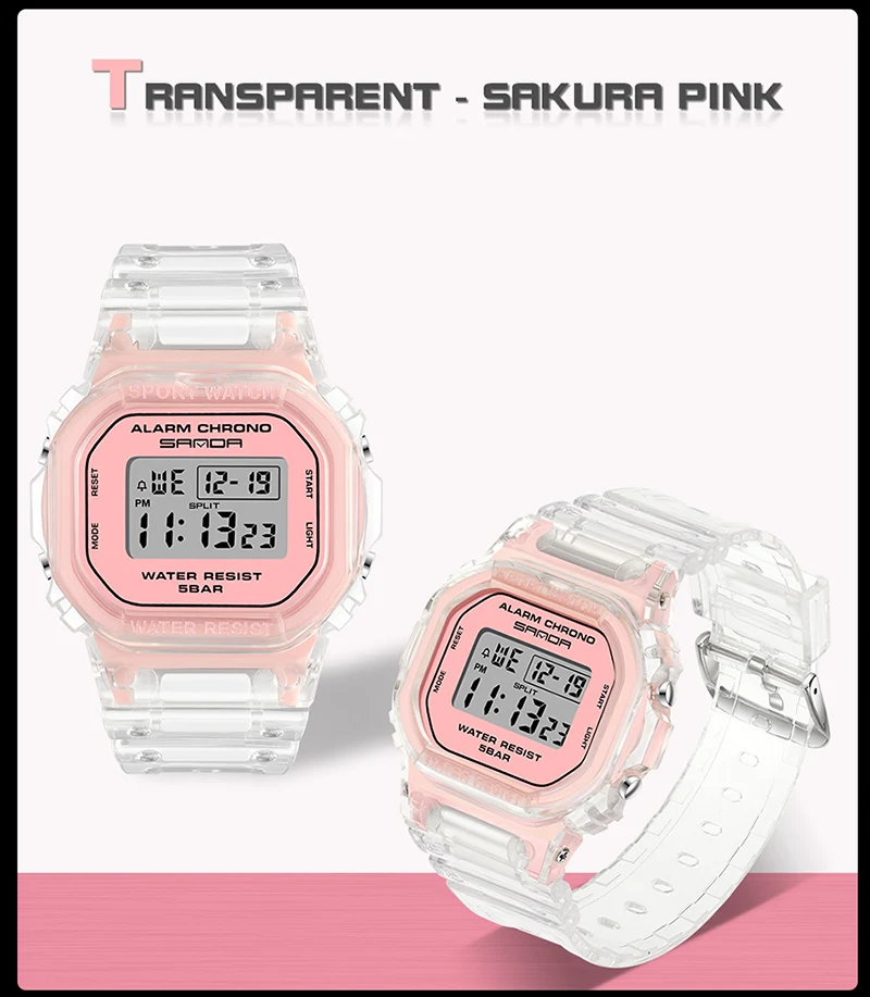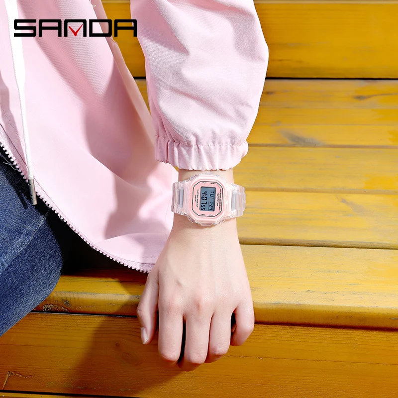 Часы наручные Sanda женские цифровые, модные спортивные электронные с прозрачным ремешком, индивидуальный дизайн