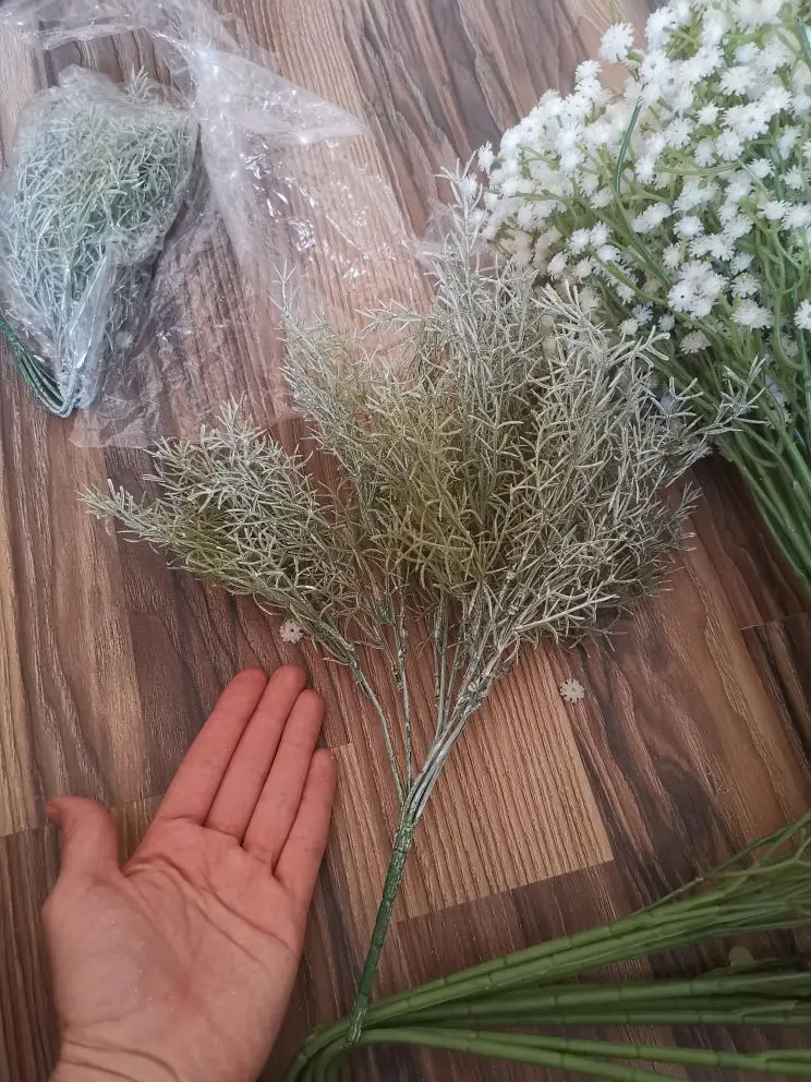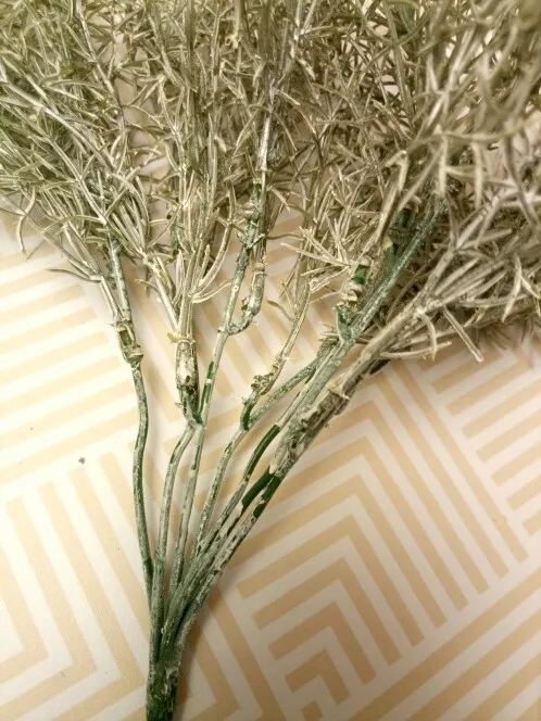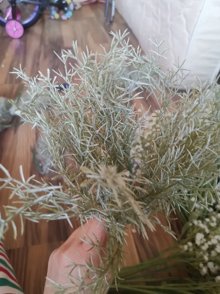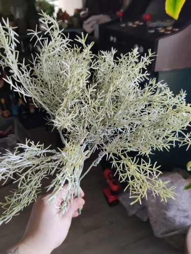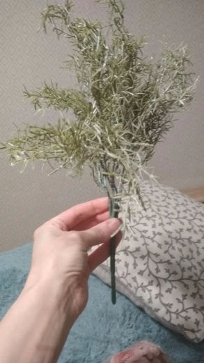 Быстрая доставка.Не ахти какая ветка,просто окунули в белую акриловую краску,со стволов она облезает.Но после купания распушилась,колючая такая,в композициях будет хорошо смотреться,особенно в зимних.Букет обьемный, из многих отдельных веточек,можно разделить на несколько композиций.