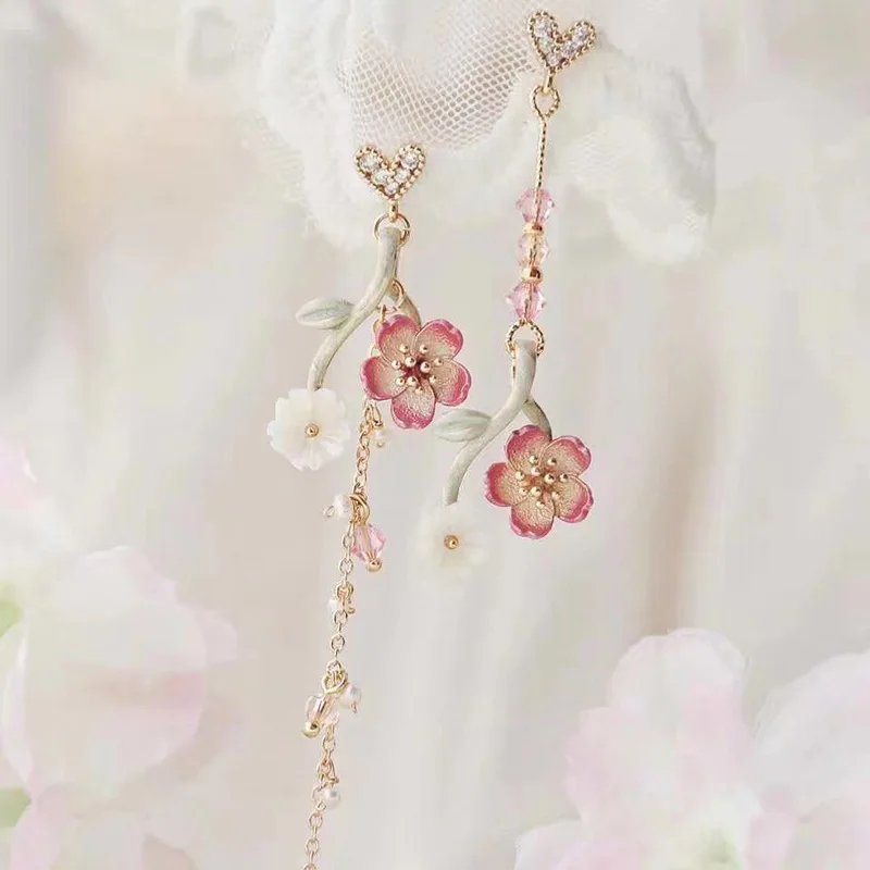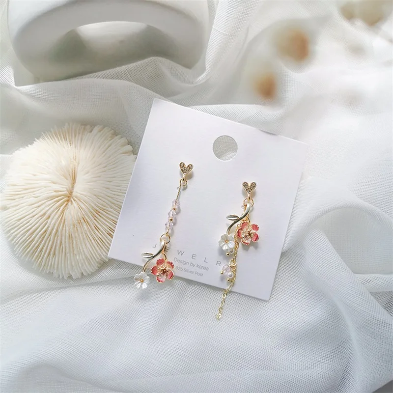 HHSPPF XY 2020 в японском стиле элегантные тонкие милые розовые вишневые серьги-подвески женские нежные ювелирные изделия с кристаллами