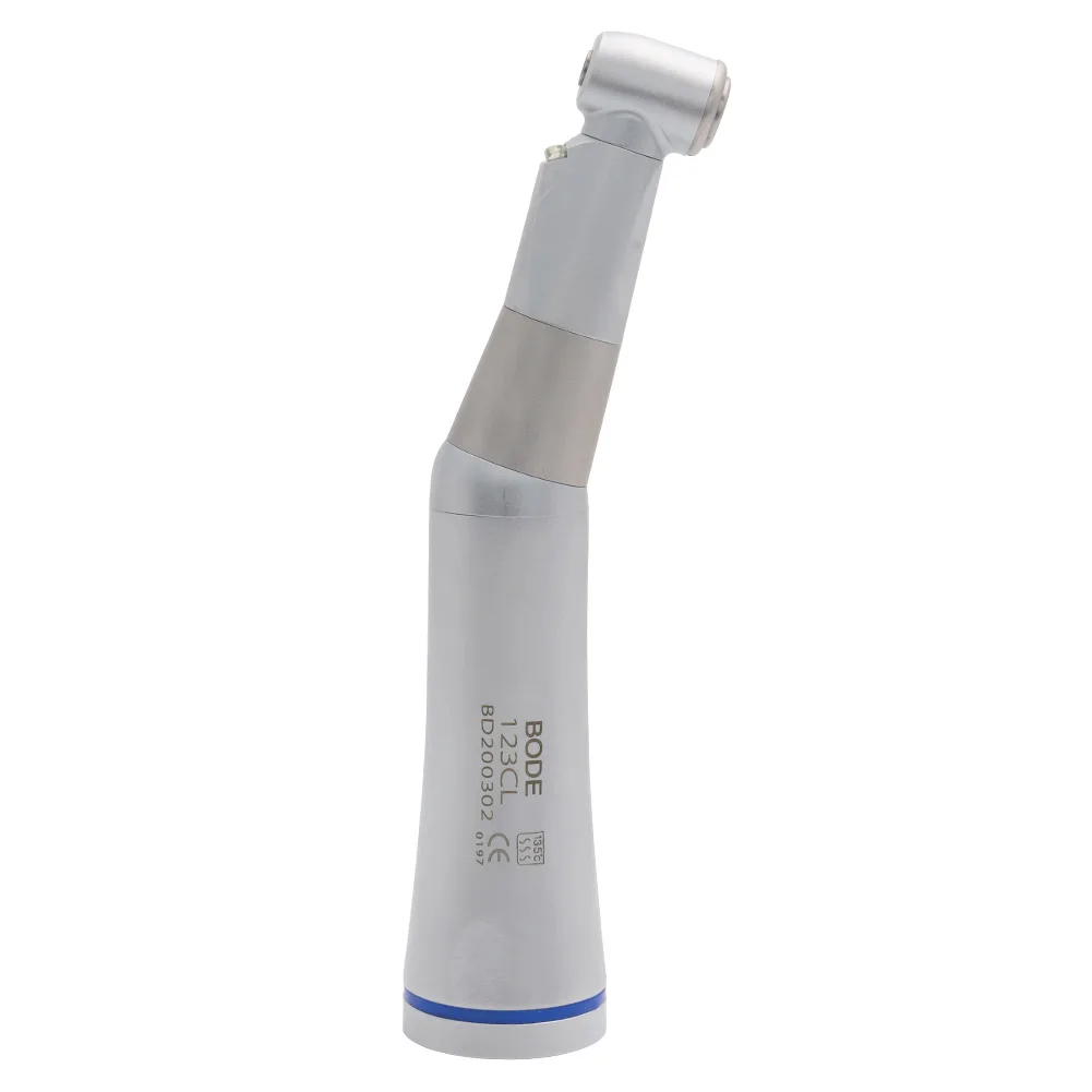 Особенности: Бренд: BODE Тип наконечника: низкая скорость Угол наконечника: угловой Светильник: Электронный генератор с автономным питанием Тип распыления: внутренний распылитель воды Тип патрона: ручной патрон Источник питания: пневматический/Воздушный Давление воздуха: 0,30 МПа-0,35 МПа Скорость вращения: ≥ 18000 об/мин Бур применимый: значение 2,345-2,355 мм Шум: ≤ 70 дБ Предназначение/дисциплина: стоматология/стоматология