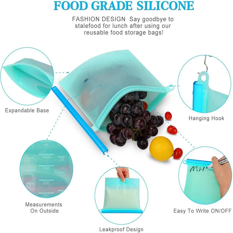 Очень большие 4000 мл силиконовые пакеты для сохранения пищи многоразовые силиконовые пакеты для хранения пищи сэндвичи, жидкие, закуски, мясо, овощи