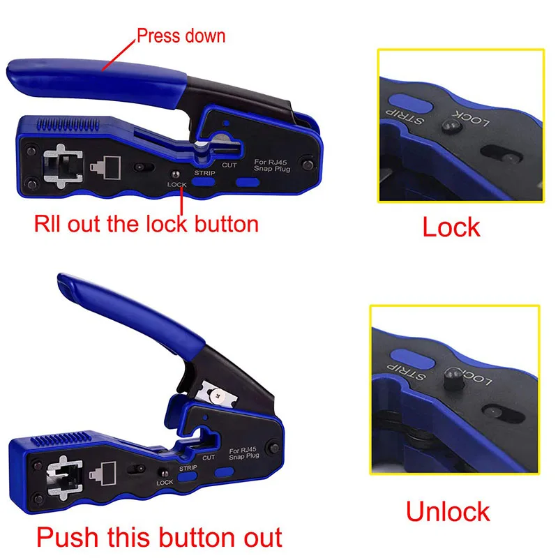 Инструмент для обжима RJ45, резак для сквозного прохода Cat6 Cat5 Cat5e 8P8C, модульные разъемы, все в одном, инструмент для обжима кабеля