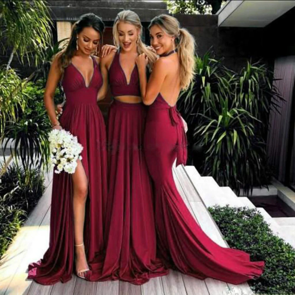 Платья для подружек невесты, длинные платья с V-образным вырезом и открытой спиной для выпускного вечера для женщин