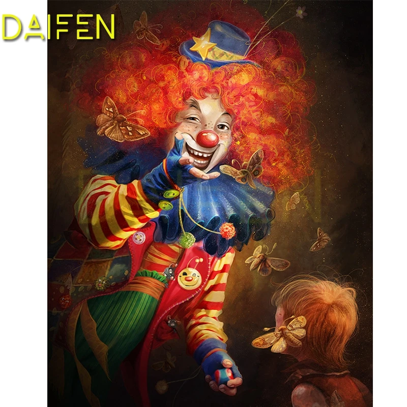 Алмазная вышивка с изображением клоуна, бабочки, девушки