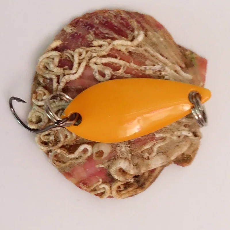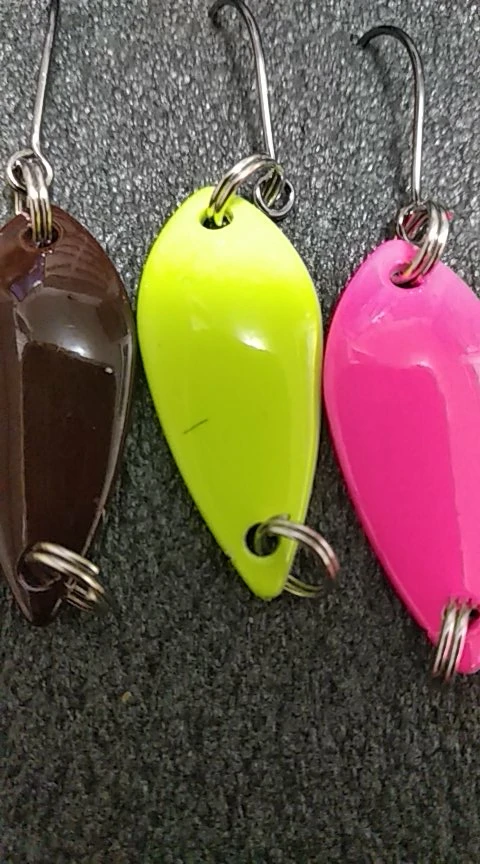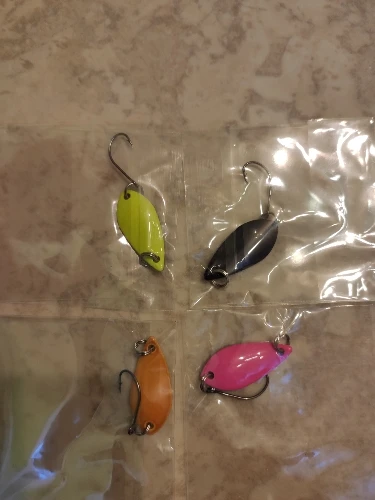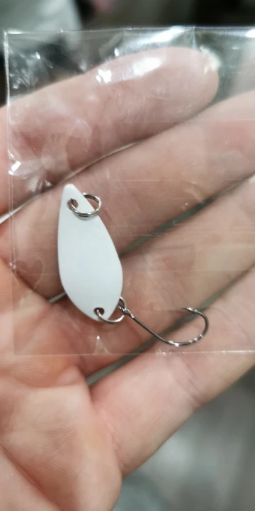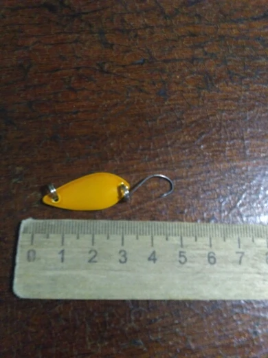 Блесенка неплохая. Форель на неё реагирует неплохо даже в глухозимье. Качество вроде ничего, однако крючок проверен только рыбой весом 500-600 грамм. Немного непривычная форма крючка, но это не мешает.