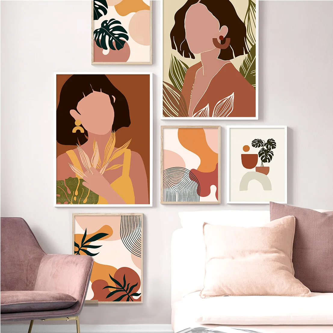 Модные Винтажные девичьи минималистичные настенные картины для гост...