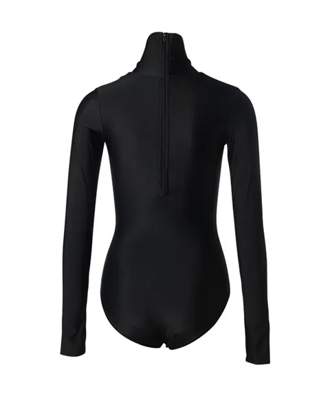 Женский слитный купальник, черный купальный костюм с длинным рукавом, с высокой горловиной, винтажный пляжный костюм для серфинга
