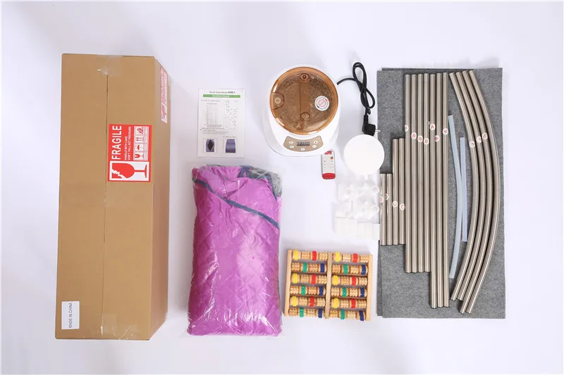 1 x Steam Generator 1 x Sauna Tent 15 x Stainless steel pipes 1 x Herb Box 1 x Remote Control 2 x Hoses 1 x Connector 1 x English Instructios