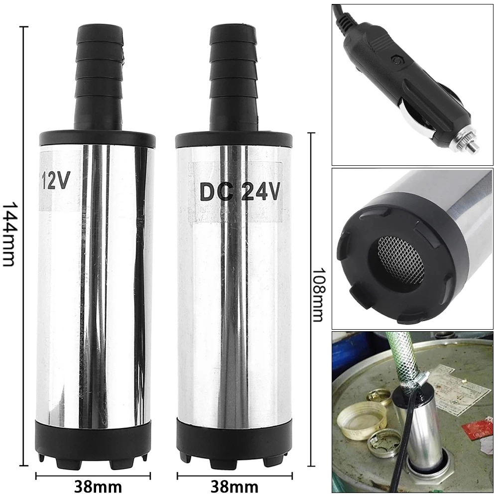 Серебристый масляный насос DC 12 В 38 мм, портативный автомобильный Электрический погружной насос, насос для перекачки топлива, воды, масла с 2 зажимами типа крокодил