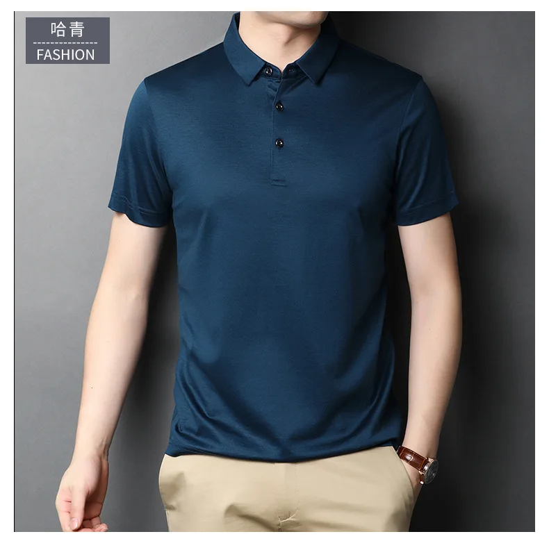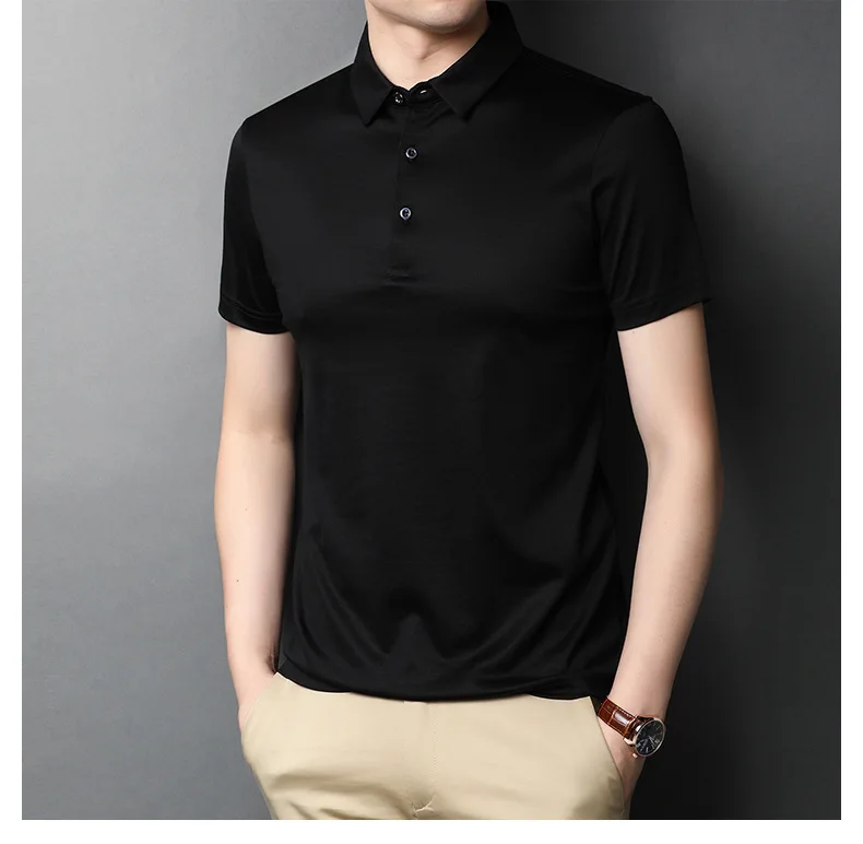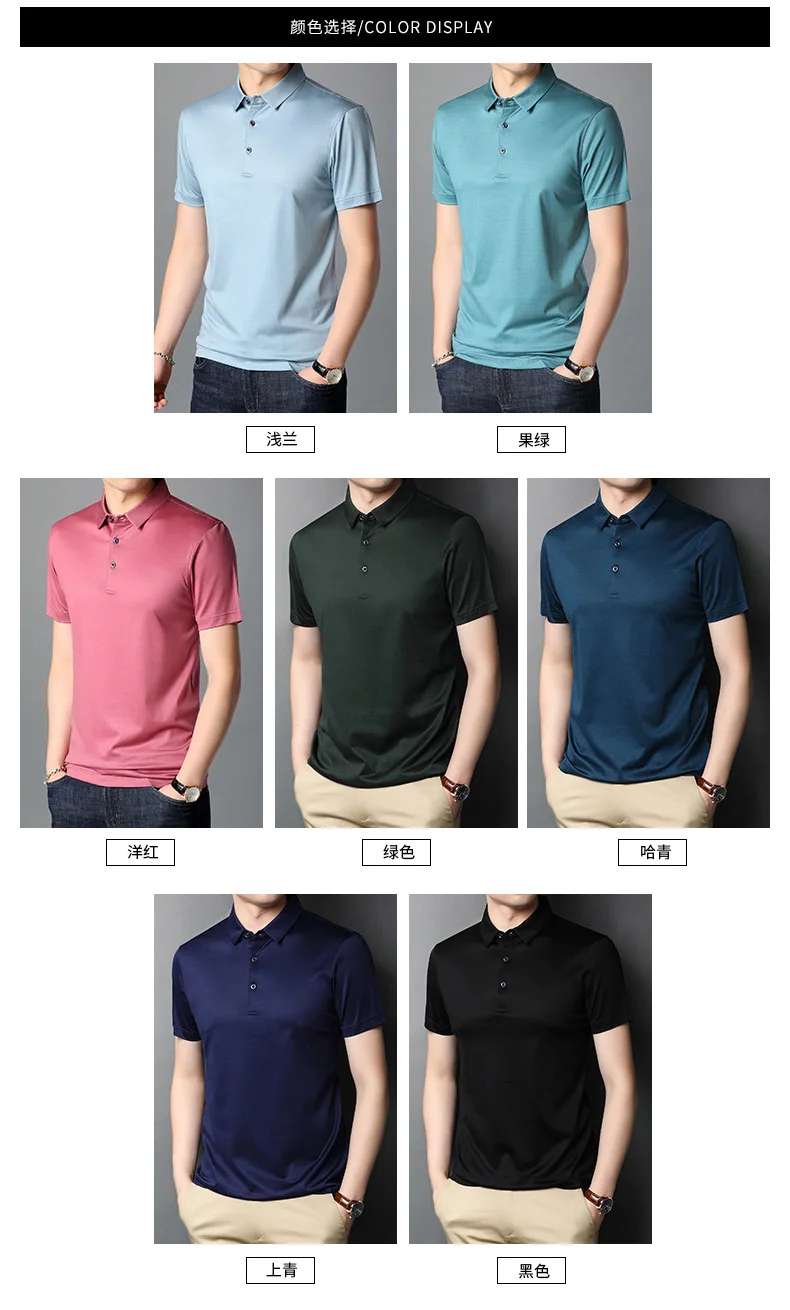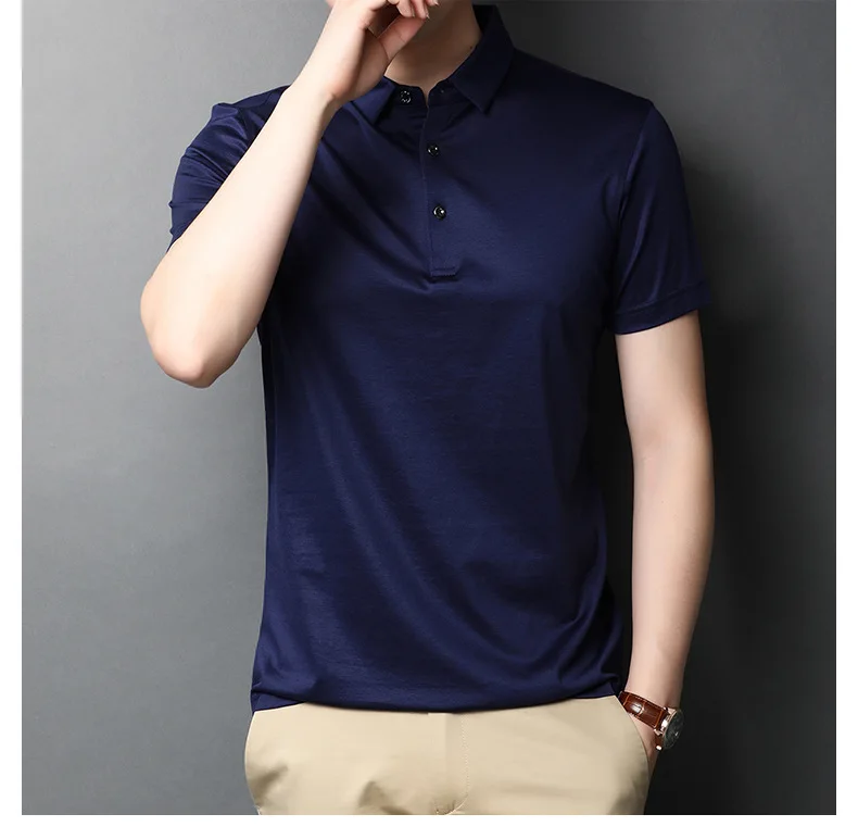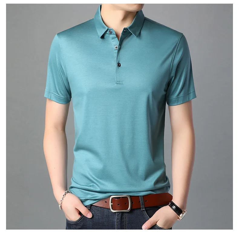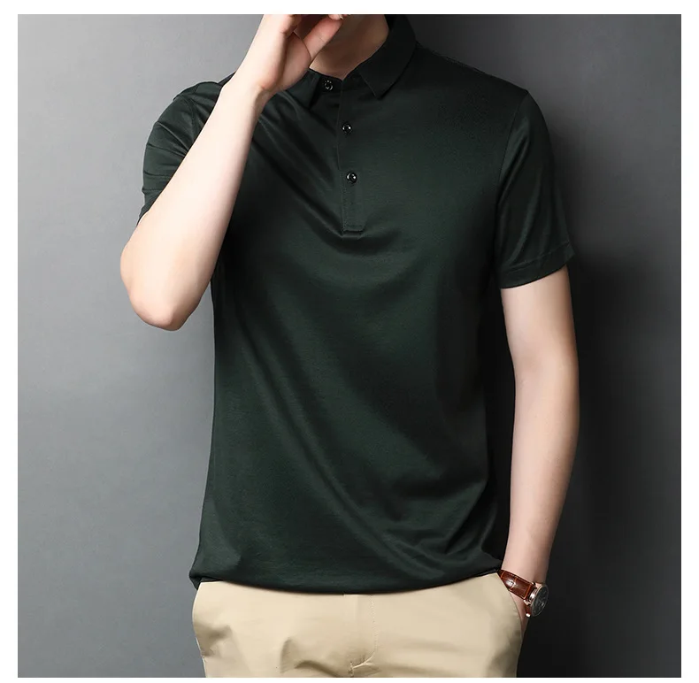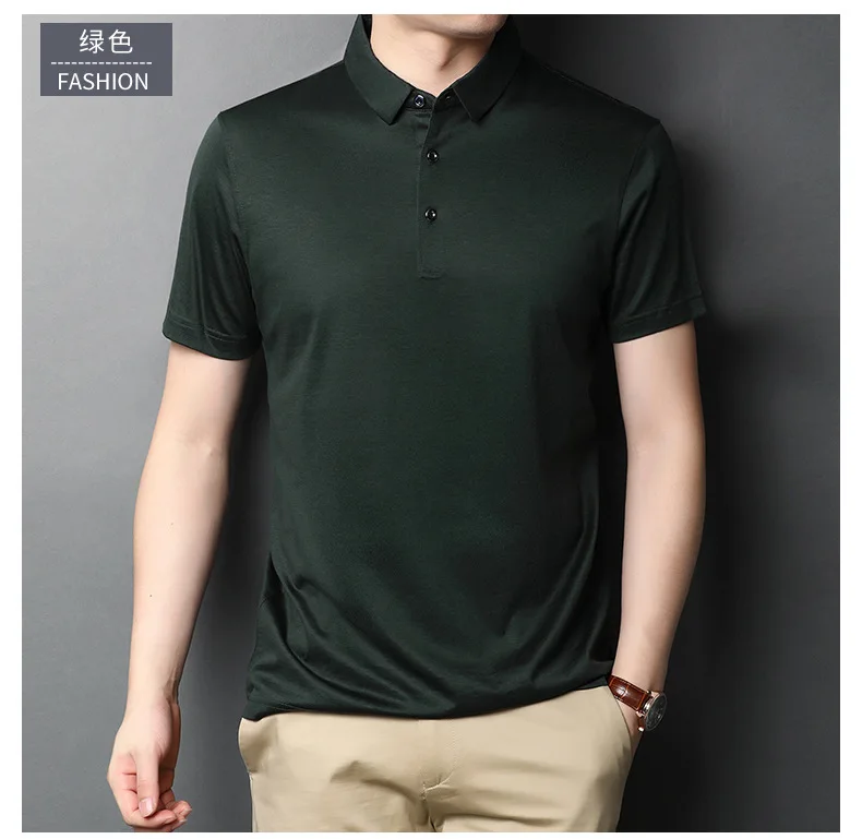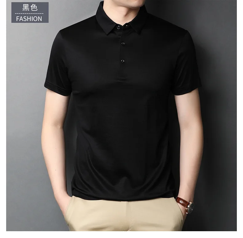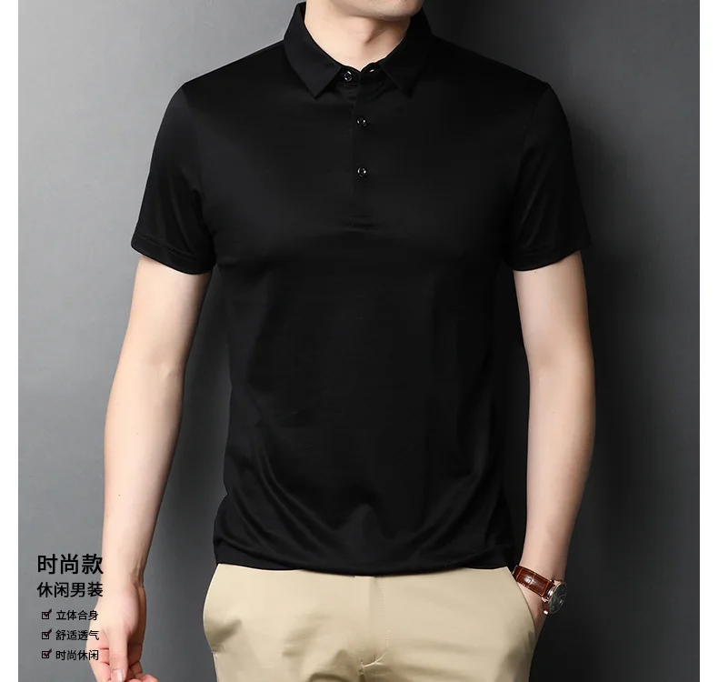 Рубашка-поло мужская приталенная, роскошная дышащая футболка из натурального шелка, с коротким рукавом, однотонная, от известного бренда, лето 2022